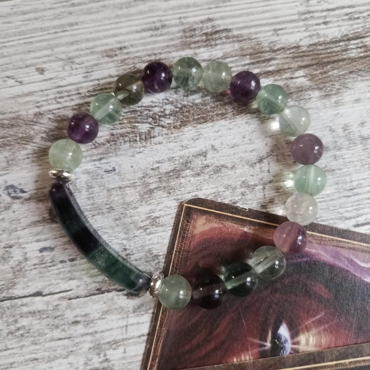 Цвет флюорита влияет на его энергетические свойства: фиолетовый способствует духовному росту и развитию интуиции, зеленый — исцелению и гармонии, голубой — коммуникации и спокойствию, желтый — интеллектуальному развитию и уверенности, а радужный объединяет все эти качества.