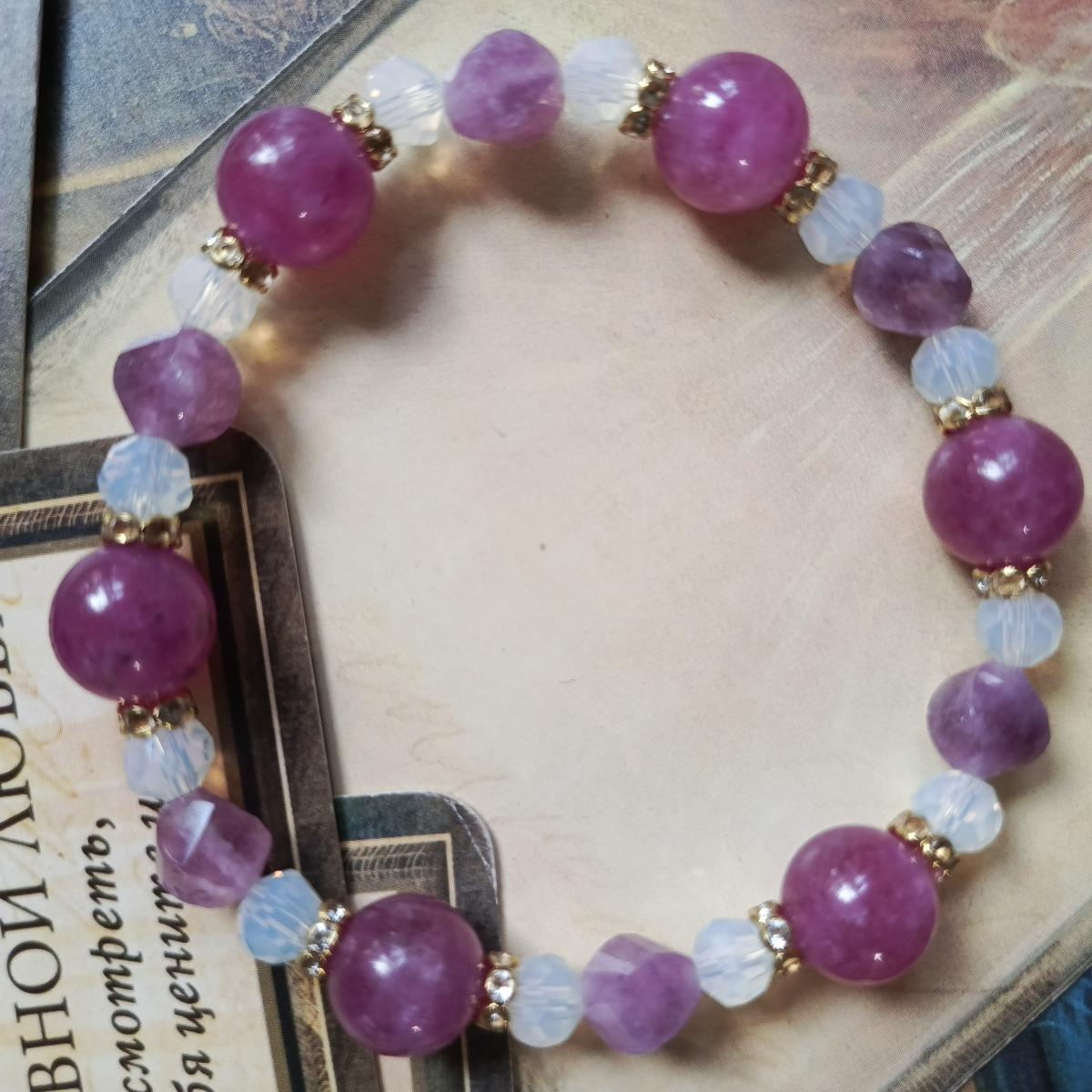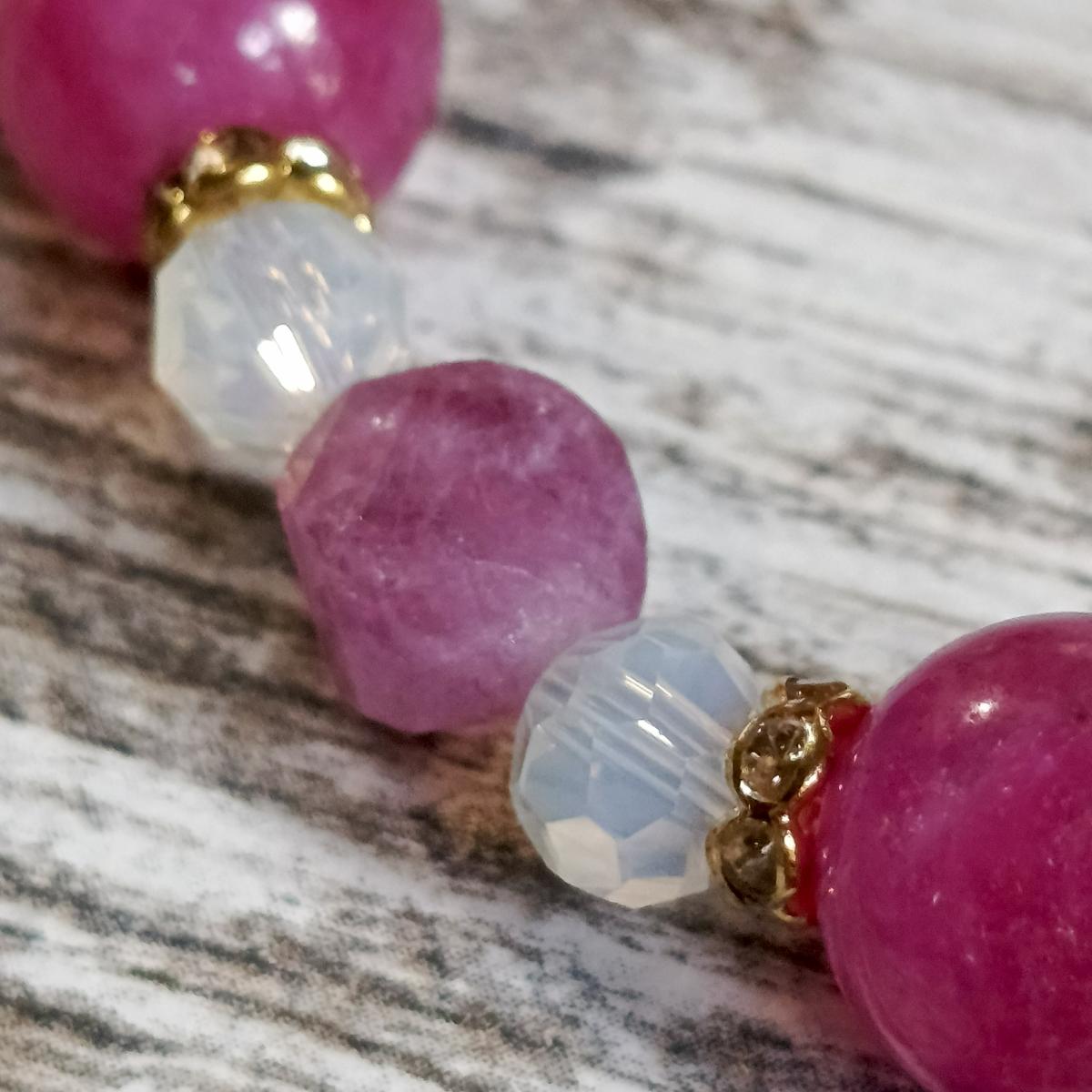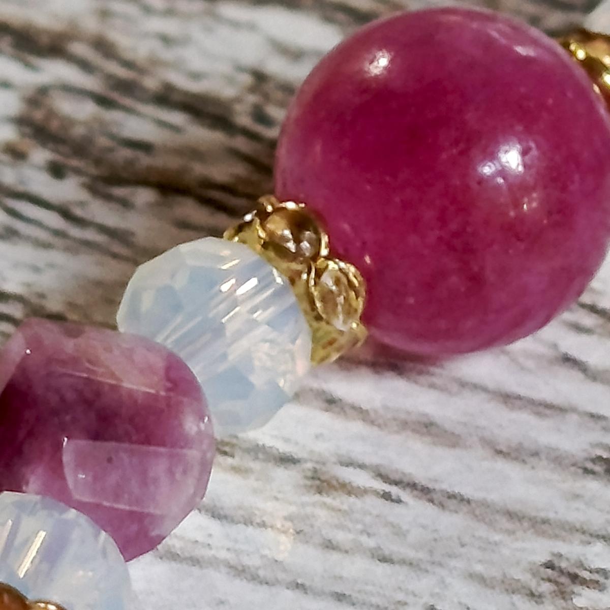 Браслет из халцедона, рубелита и опалита