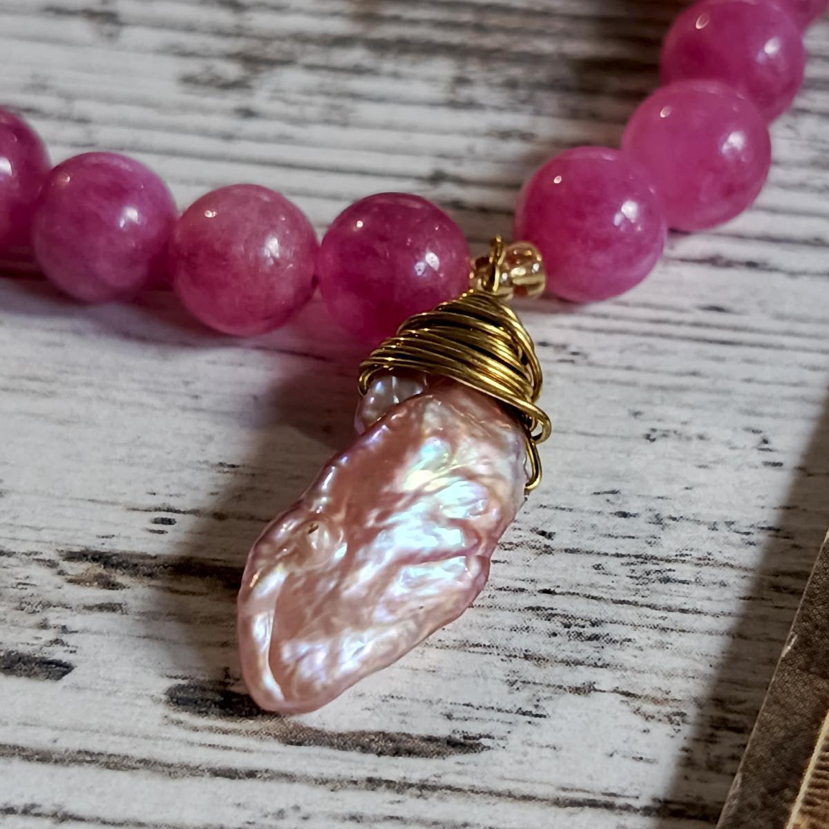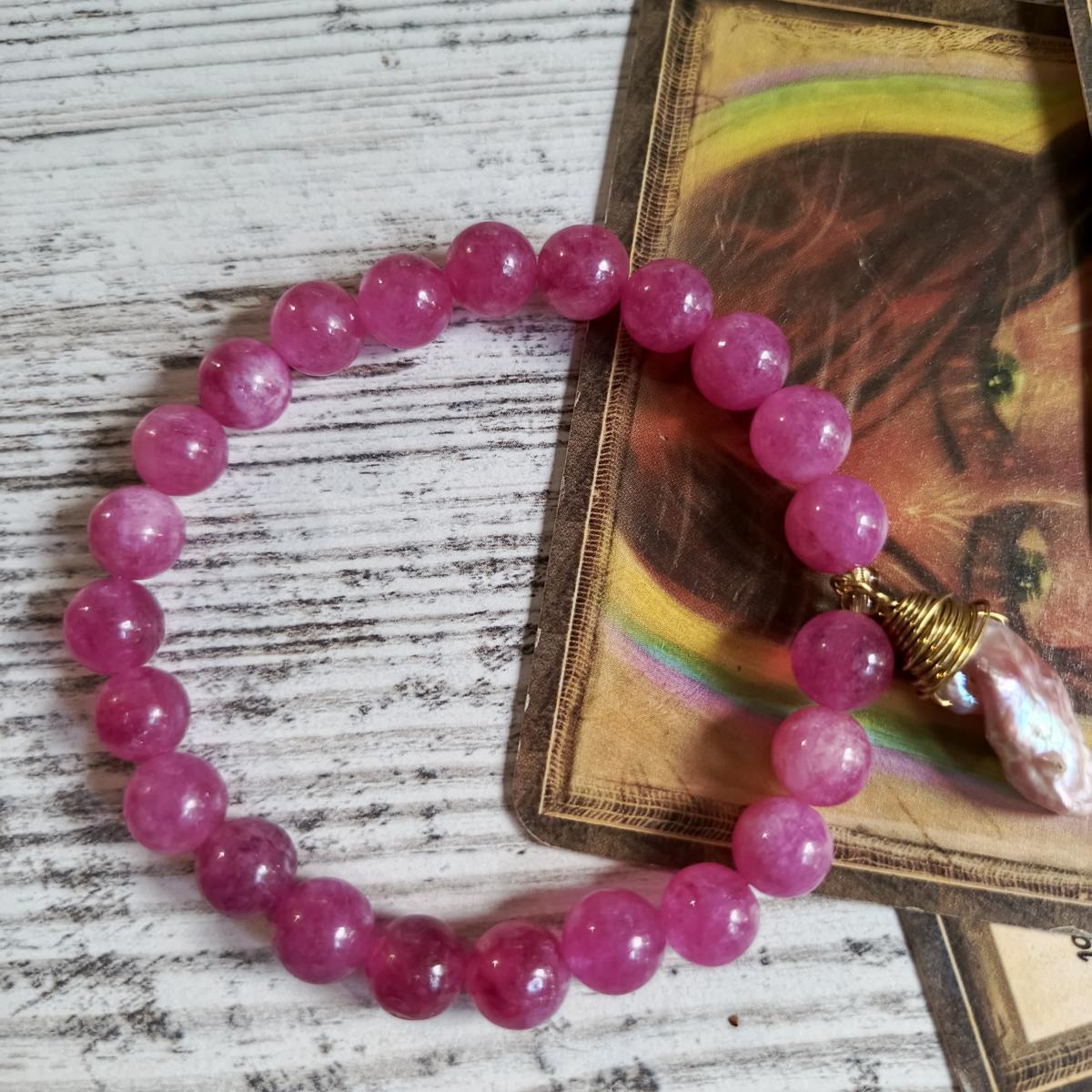 Сочетание розового халцедона и жемчуга Бива представляет собой гармоничный дуэт, сочетающий свойства сердечной и духовной энергии. Розовый халцедон способствует эмоциональному исцелению, развитию любви, сострадания и самопринятия, создавая ощущение спокойствия и гармонии в отношениях. Жемчуг Бива, связанный с чистотой, мудростью и духовным спокойствием, помогает укрепить интуицию, защитить от негативных воздействий и повысить внутреннюю ясность.