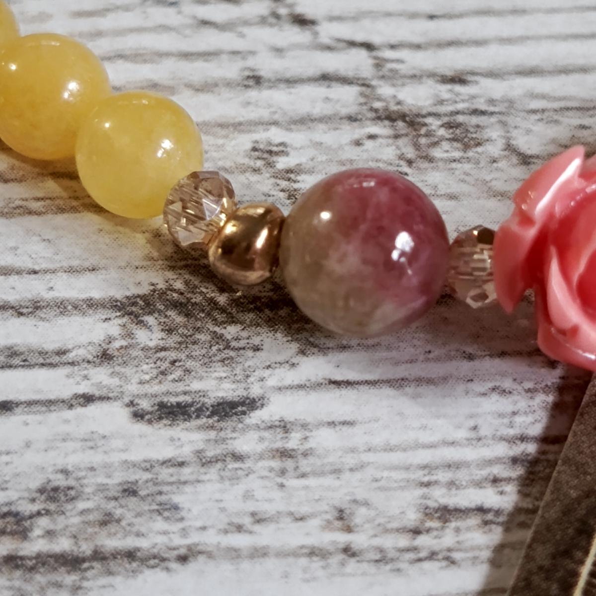 Сочетание желтого кальцита, турмалина и коралла представляет собой сбалансированную комбинацию энергий, каждая из которых выполняет свою роль. Желтый кальцит способствует активации интеллекта, развитию воли и уверенности, усиливает ментальные процессы и создает позитивную энергию. Турмалин обеспечивает защиту, заземление и балансировку энергетических потоков, а также очищает от негативных влияний. Коралл связывает с жизненной силой, эмоциями и интуицией, усиливает страсть и творческое начало.