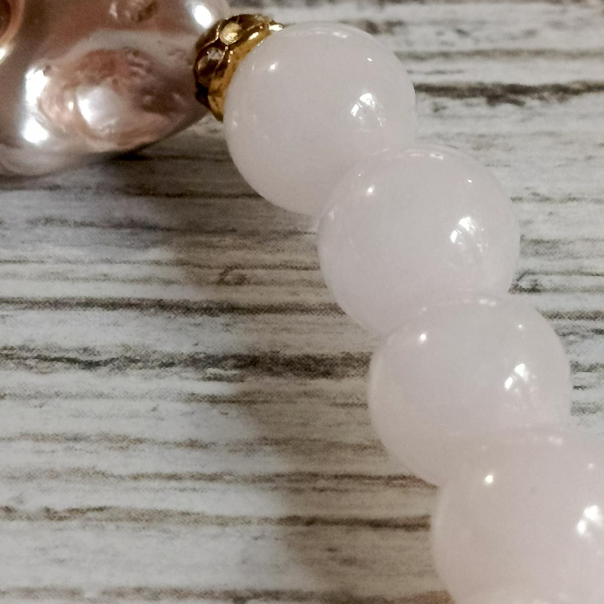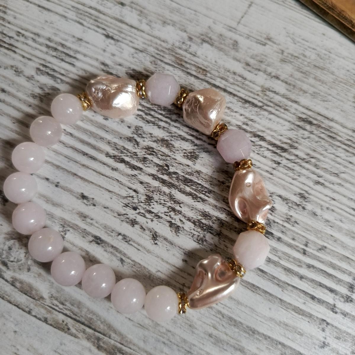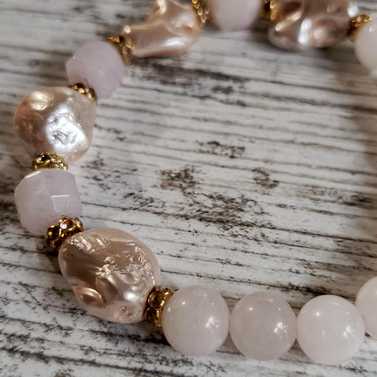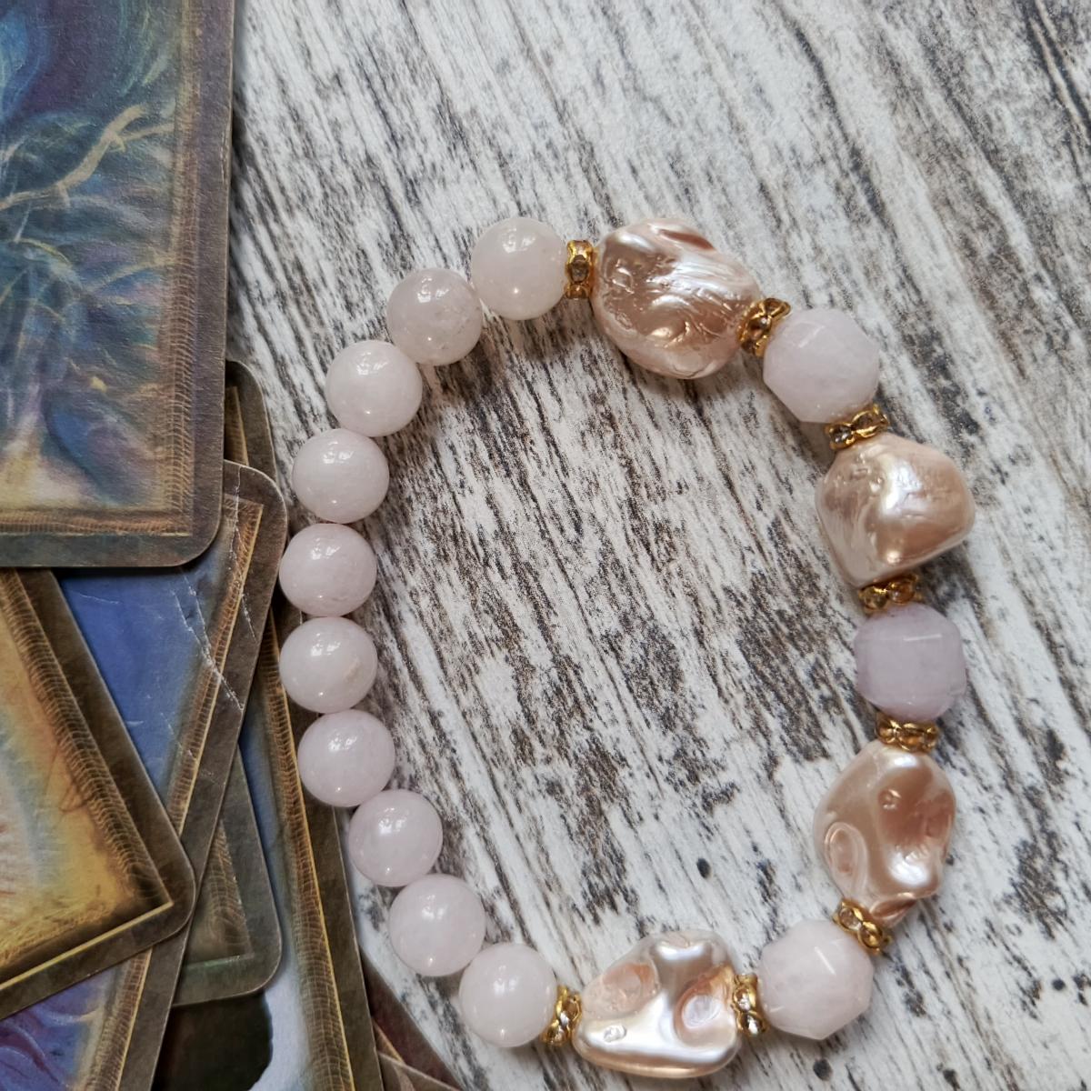 Сочетание розового кварца, кунцита и барочного жемчуга представляет собой мощную комбинацию, направленную на работу с сердечной энергией, исцеление и принятие. Каждый из этих камней обладает уникальными свойствами: розовый кварц способствует безусловной любви и открытию сердечной чакры, кунцит помогает соединить сердечную чакру с высшими уровнями духовности и отпустить внутренние блоки, а барочный жемчуг учит принимать себя и видеть красоту в несовершенствах.