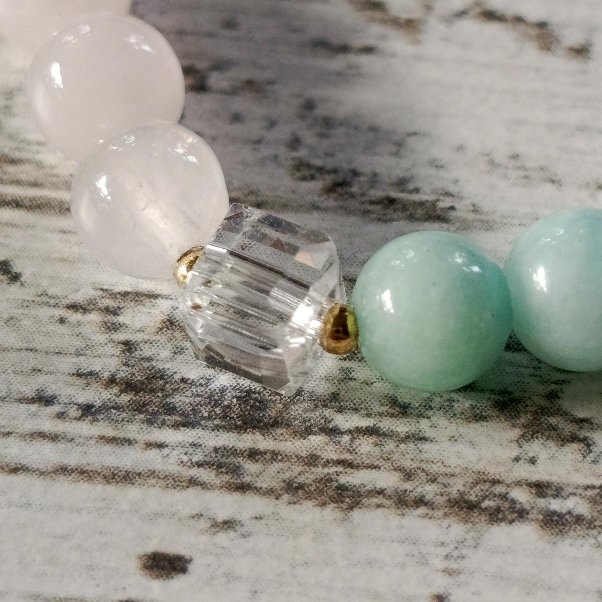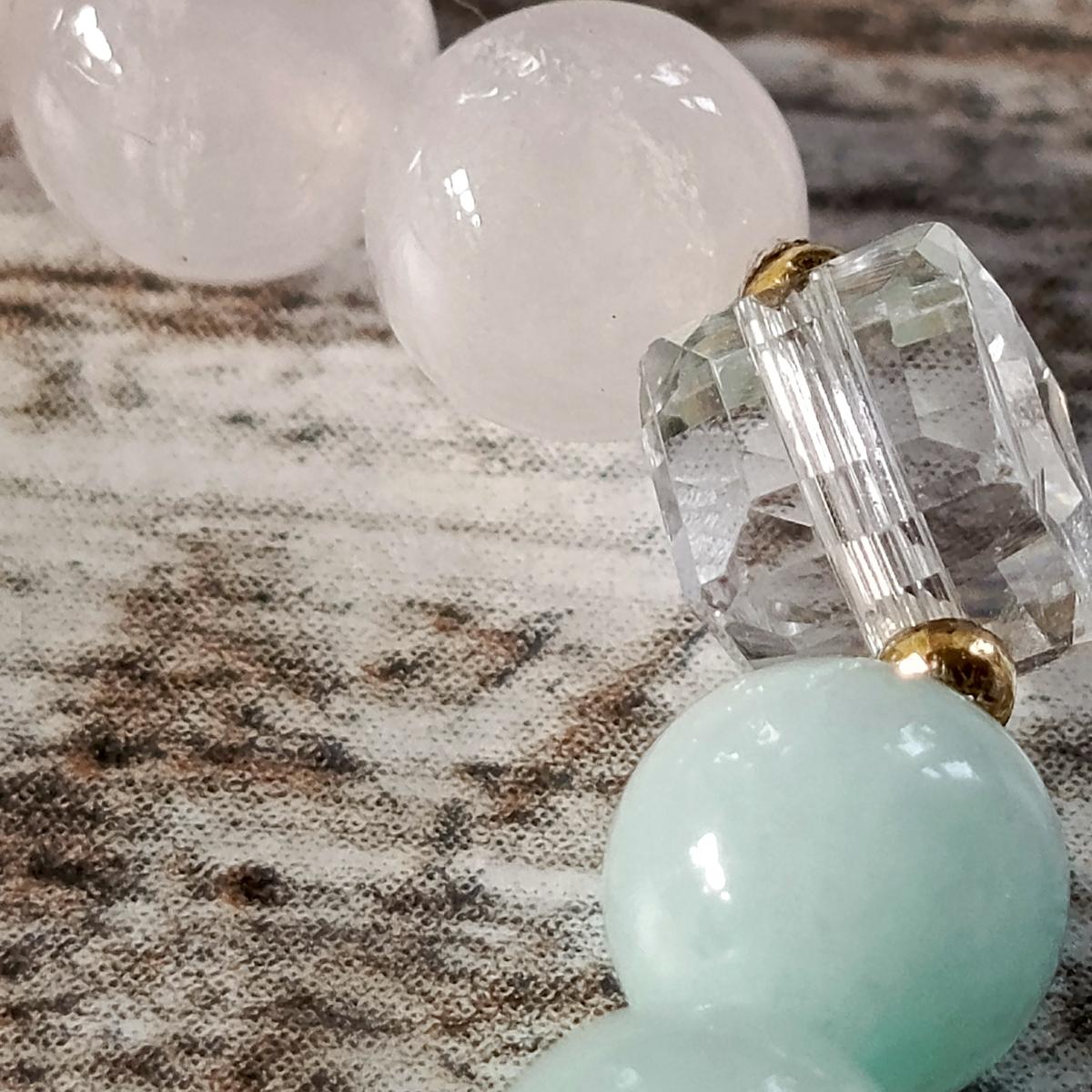 Ларимар, розовый кварц и хрусталь образуют гармоничное сочетание энергий, усиливающее эмоциональное исцеление, любовь и ясность энергий.