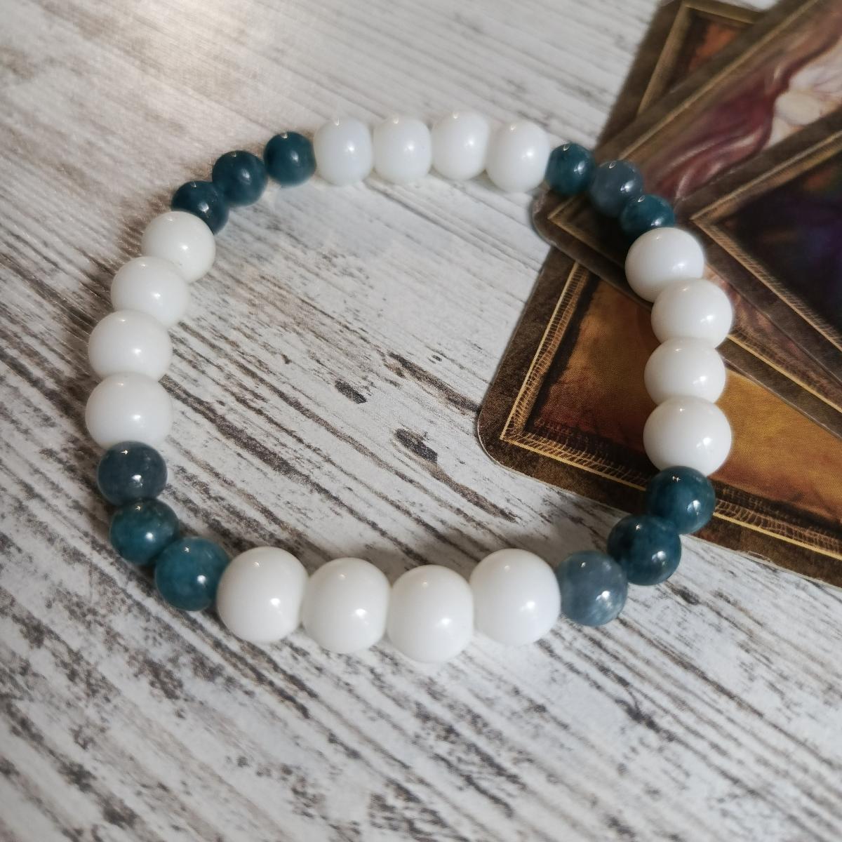Сочетание моржовой кости и дюмортьерита представляет собой гармоничный союз энергий Земли, Воды, духа и высших знаний. Моржовая кость символизирует защиту, связь с предками, устойчивость и материальное благополучие, а также требует уважения и благодарности за дар животного. Дюмортьерит, в свою очередь, усиливает связь с высшими сферами, способствует духовной трансформации, развитию интуиции и получению знаний из тонких миров.