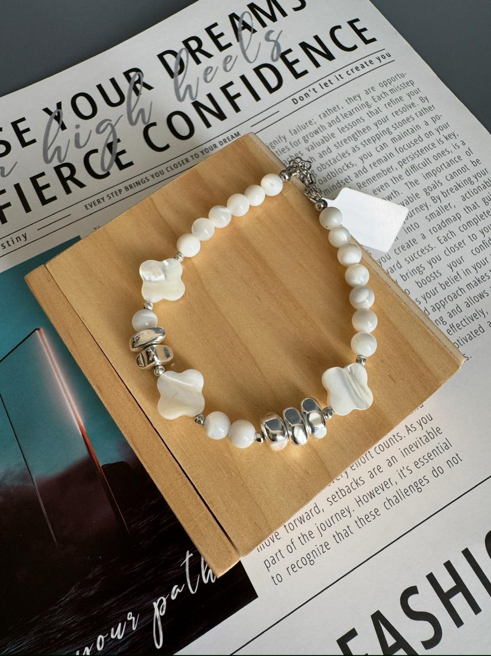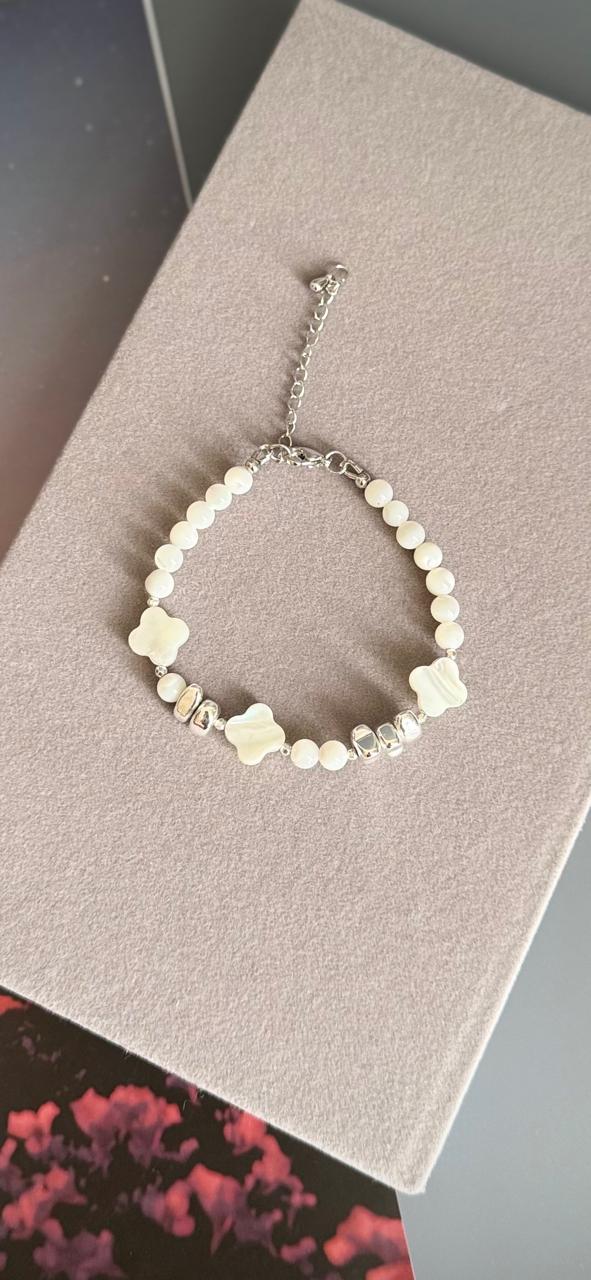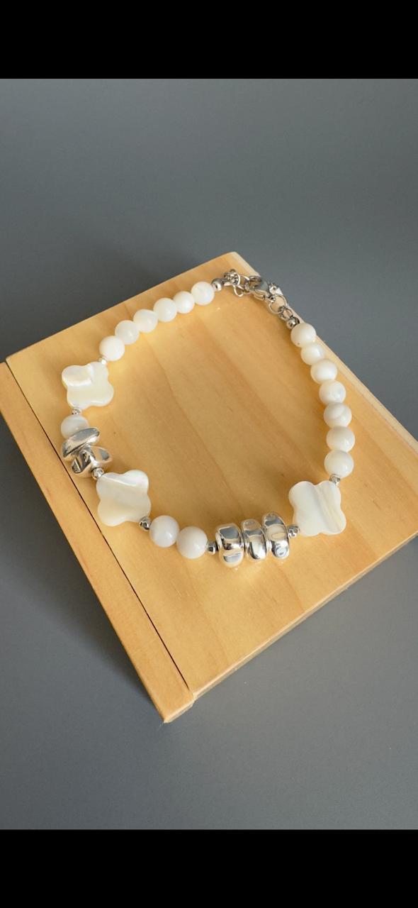 Браслет из натурального перламутра и гематита.