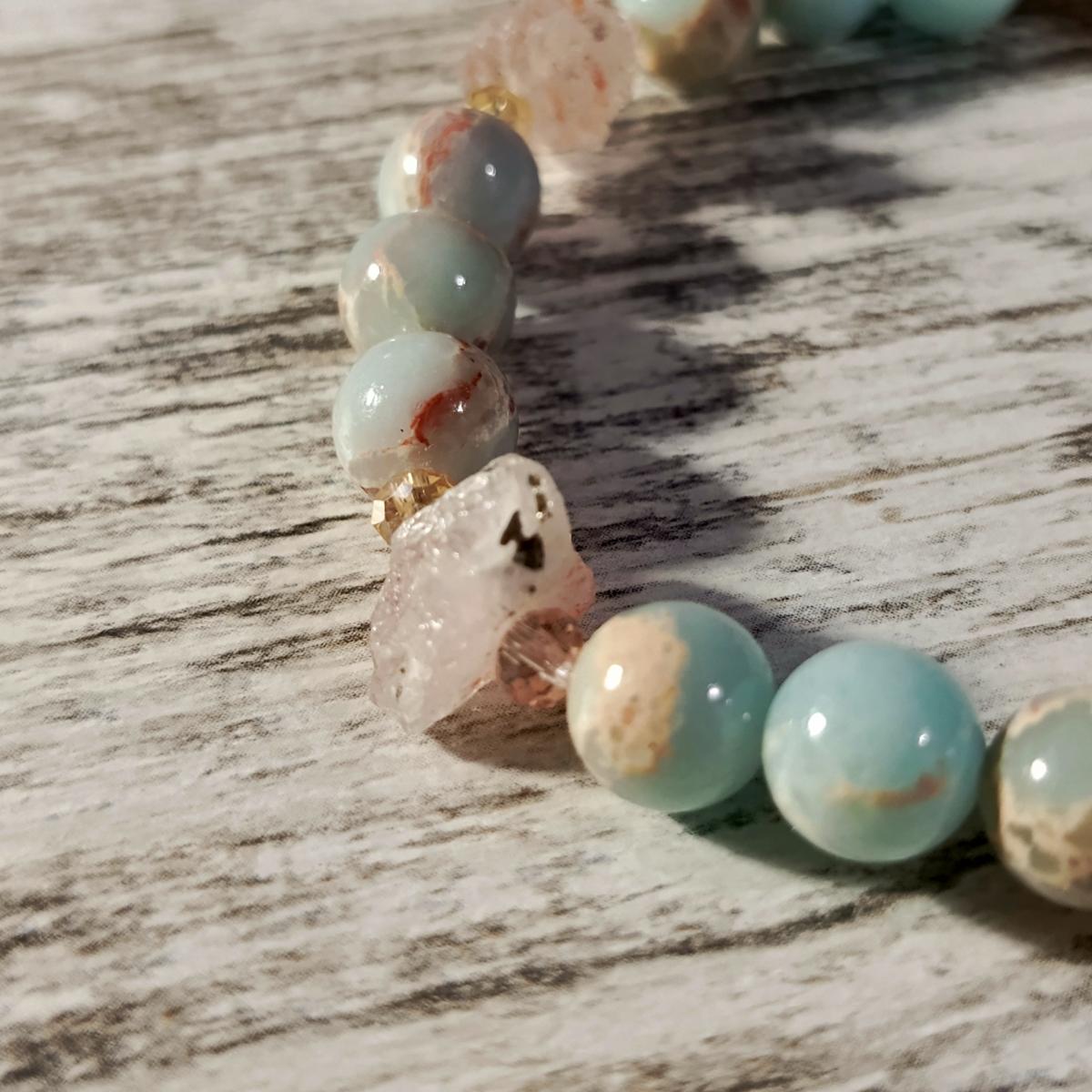 Голубой варисцит и клубничный кварц — гармоничное сочетание энергий: