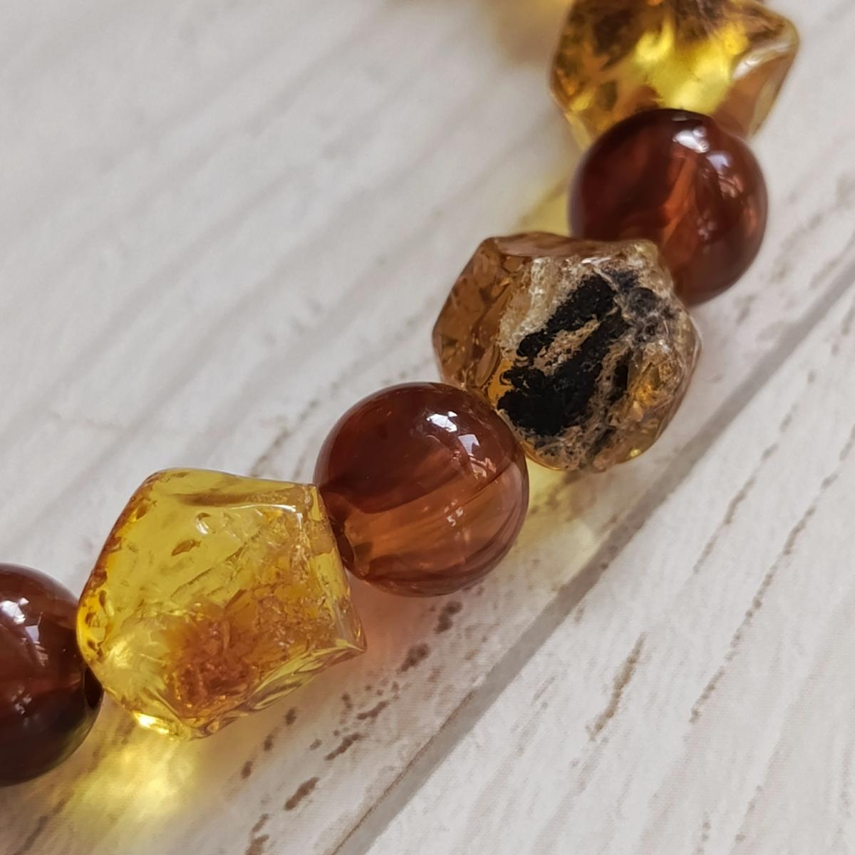 Обработанный янтарь и янтарь «живой» в сочетании создают сильный, мягкий и гармоничный союз.