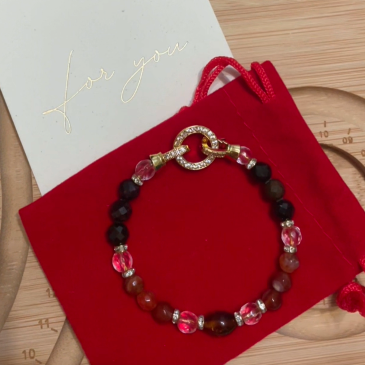 Браслет «Процветание», выполненный из граната, горного хрусталя и сердолика в изысканной золотой оправе, — это не просто украшение, а настоящий талисман, созданный для гармонии, успеха и внутренней силы.
