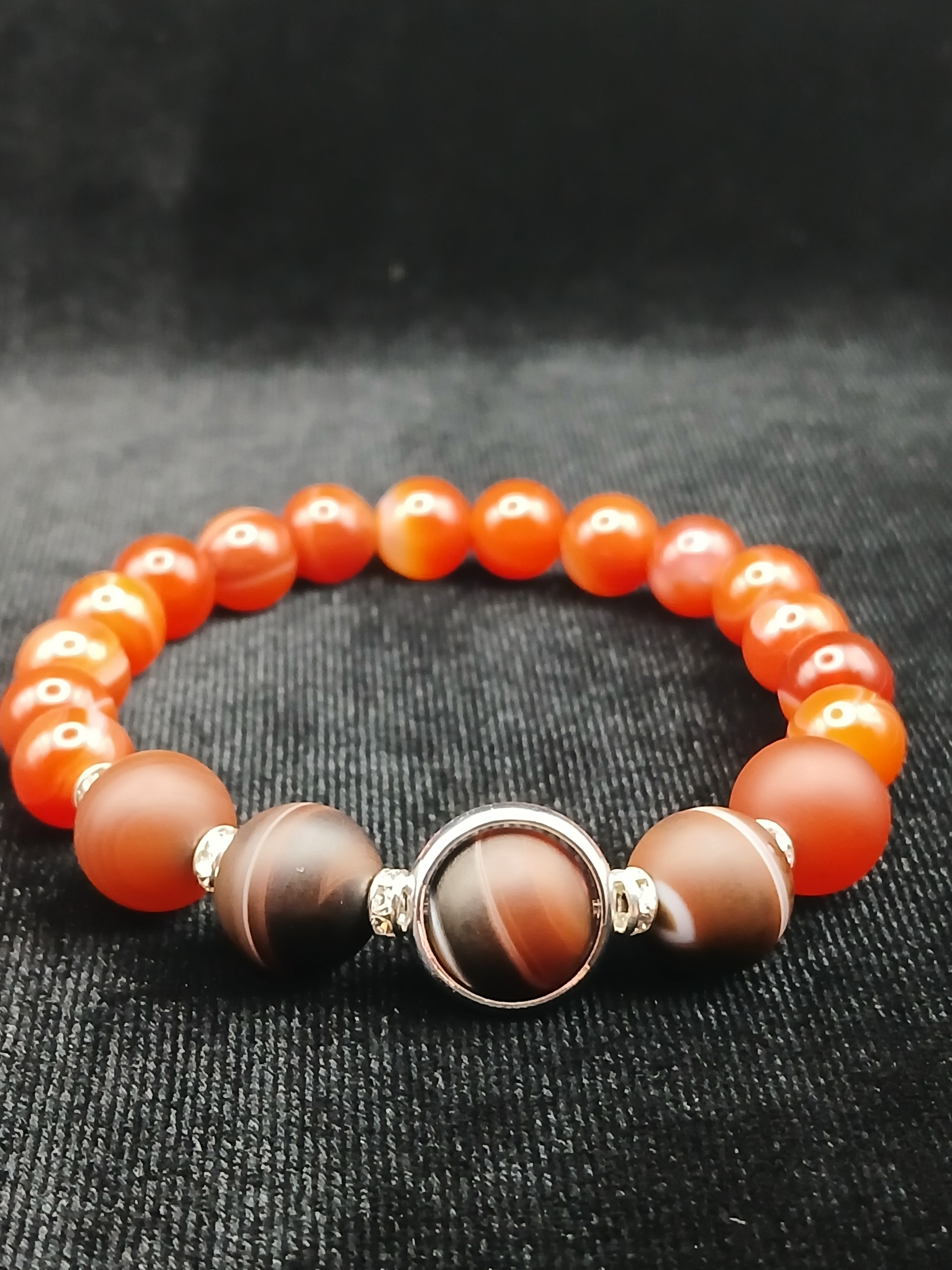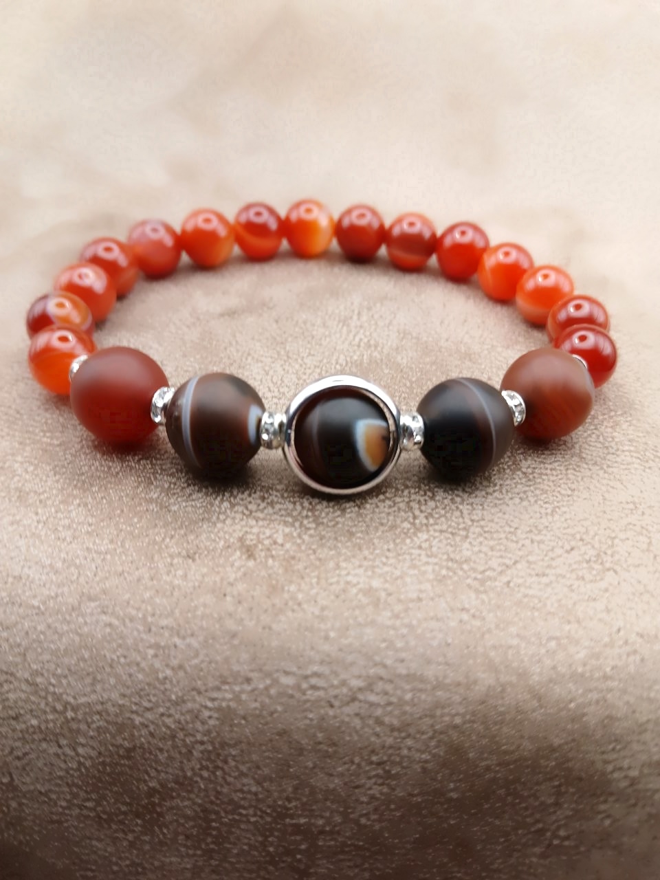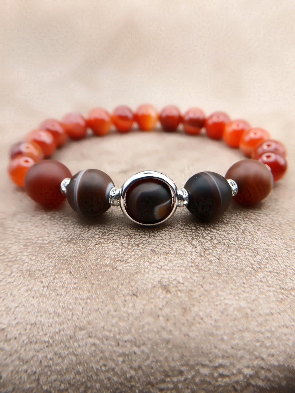 Матовый сердолик в центре, обрамленный кольцом, придает браслету особый шарм и стиль.