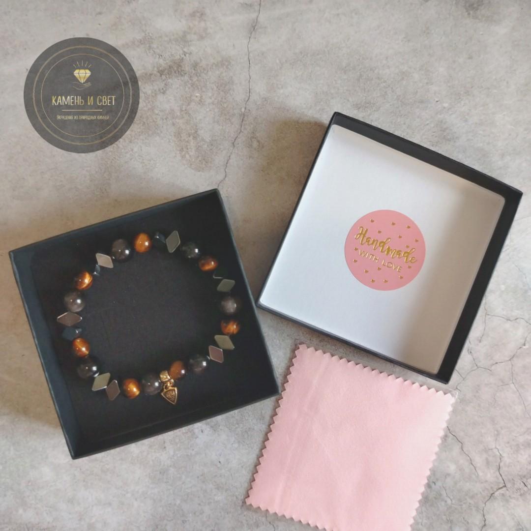 Тигровый глаз — защищает от негативной энергии и дарит уверенность. Его уникальная светоотражающая структура добавляет глубину и интерес к дизайну браслета.