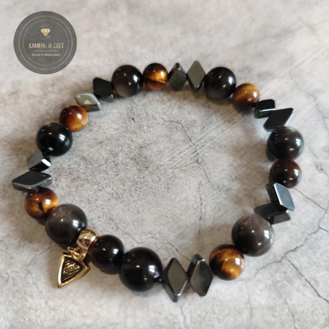 Если вы ищете оригинальный аксессуар, который подчеркнет вашу индивидуальность и стиль, обратите внимание на мужской браслет "Триада власти". Этот браслет собран из тщательно подобранных материалов, таких как тигровый глаз, обсидиан и гематит, что делает его не только красивым, но и символизирующим могущество и силу.