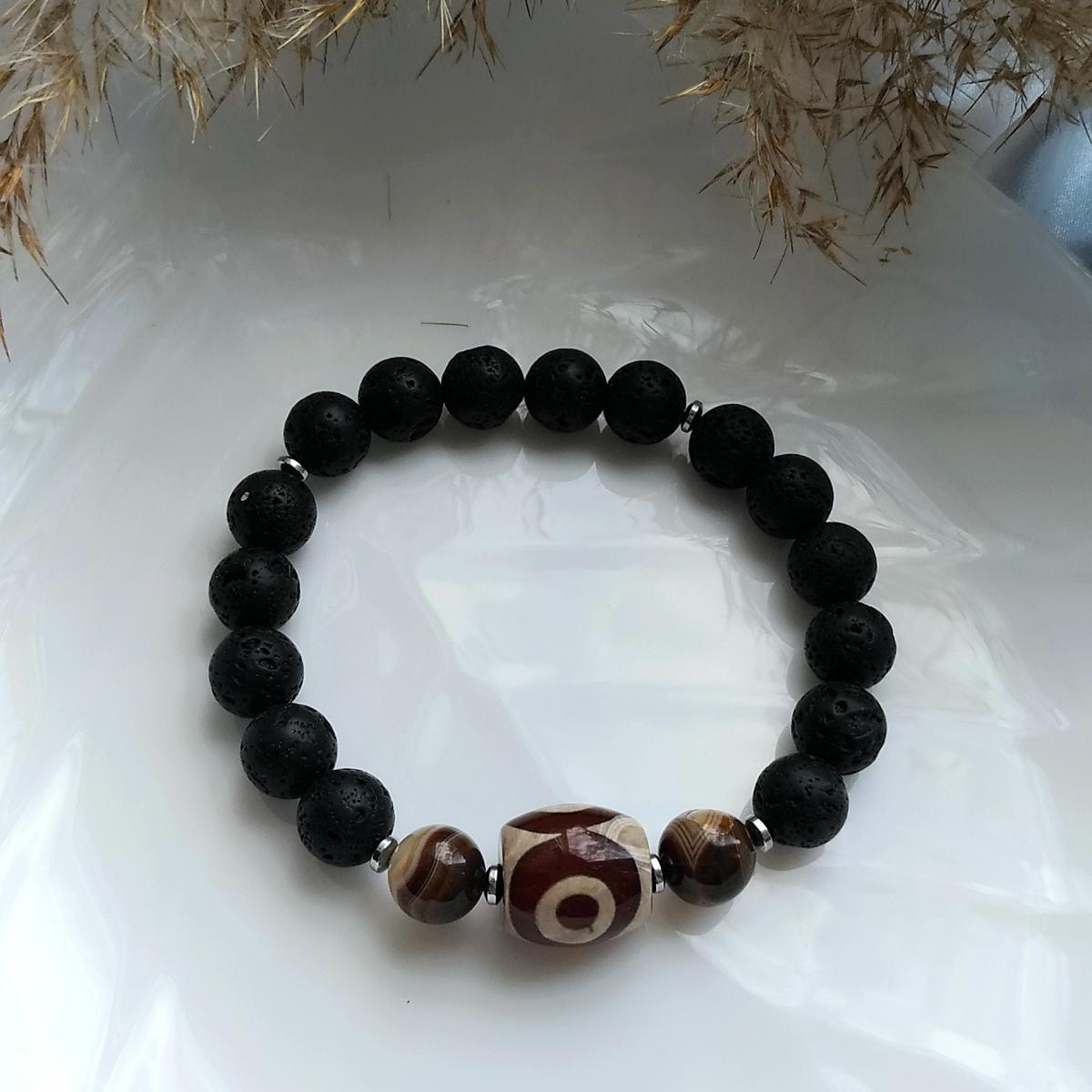 Мужской браслет с ДЗИ 1 глаз, агатом