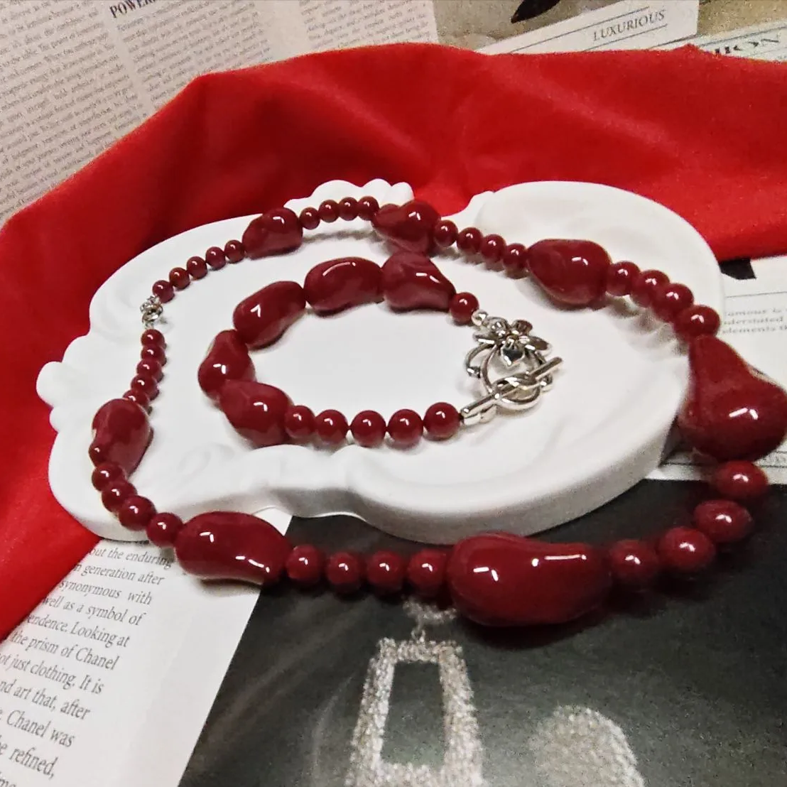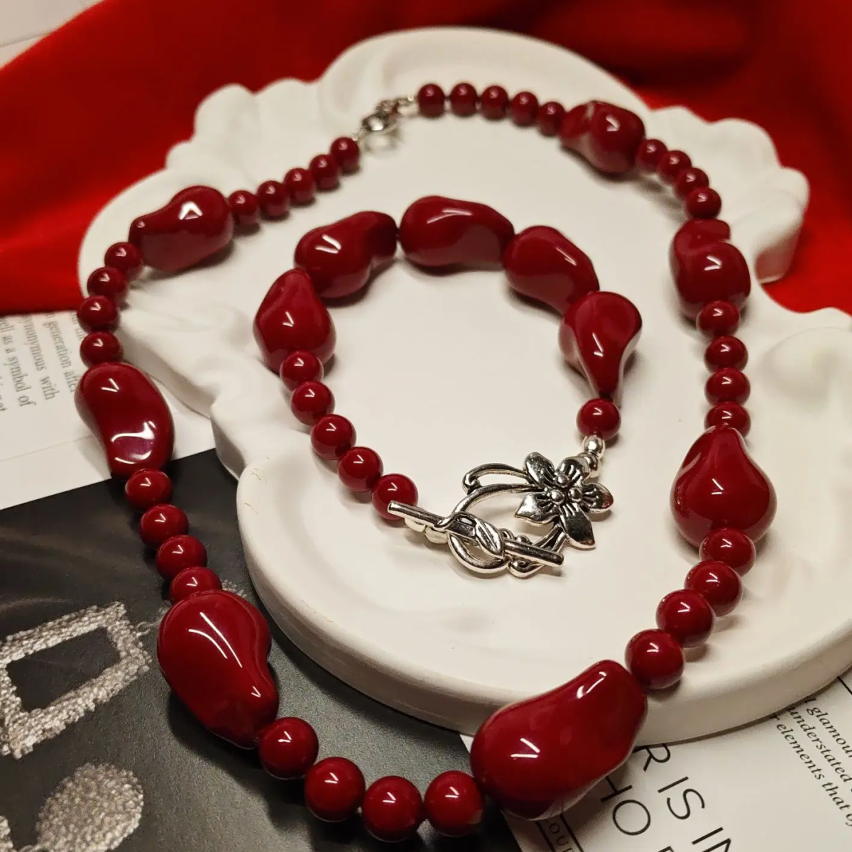 Комплект бусы и браслет из жемчуга майорка, цвет бордо