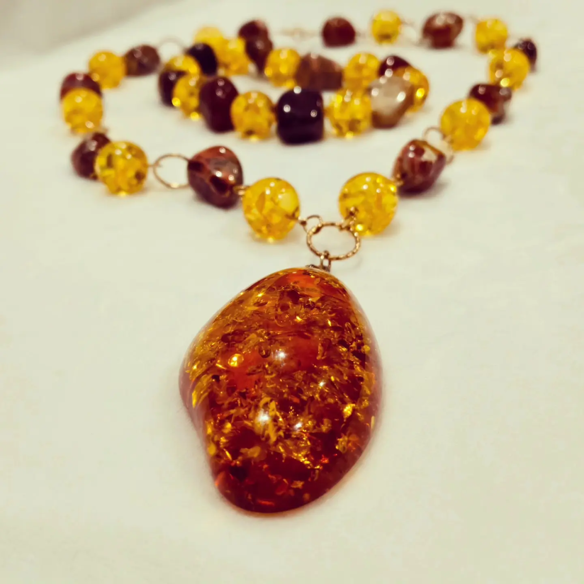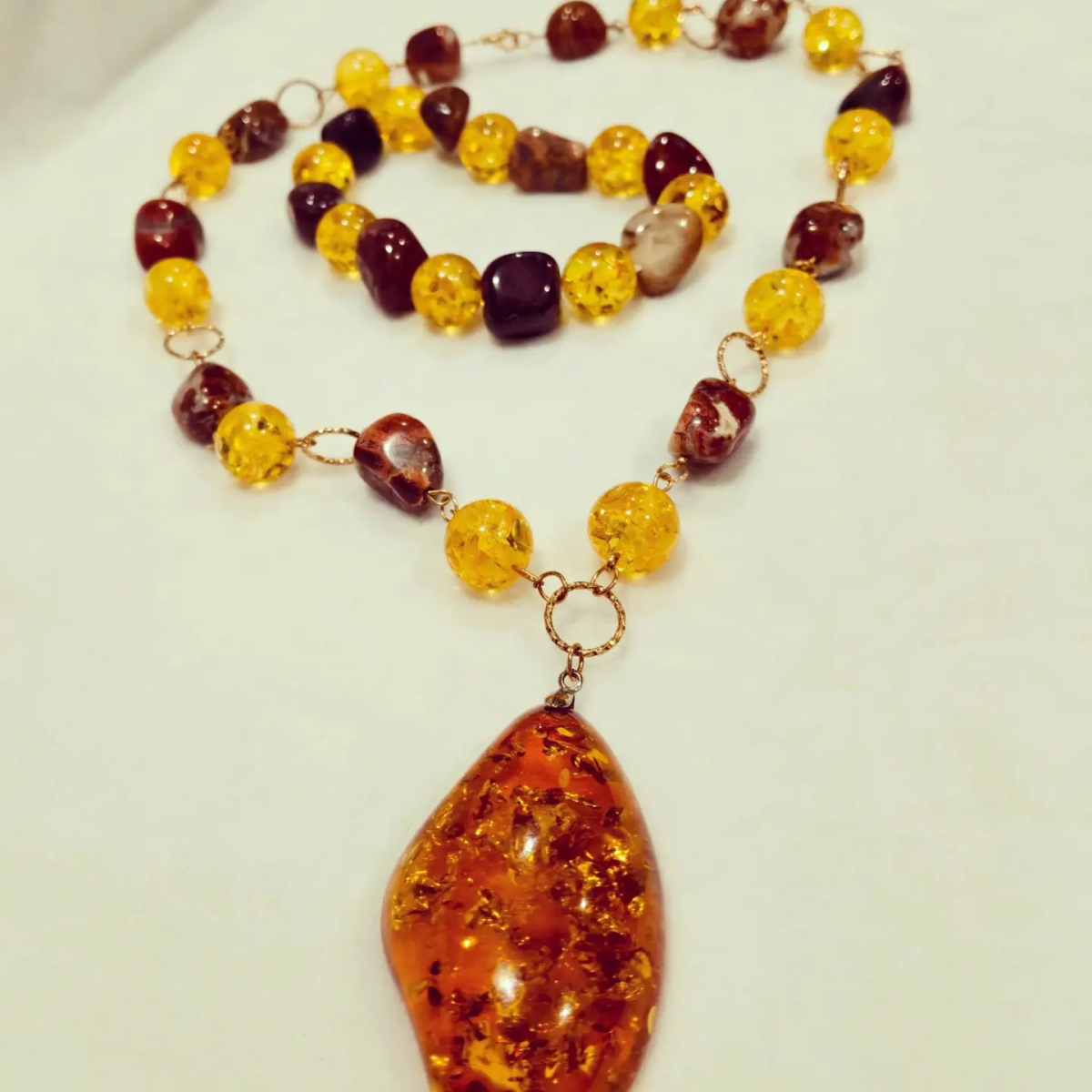 Бусы с янтарем и яшмой, длина 57 см