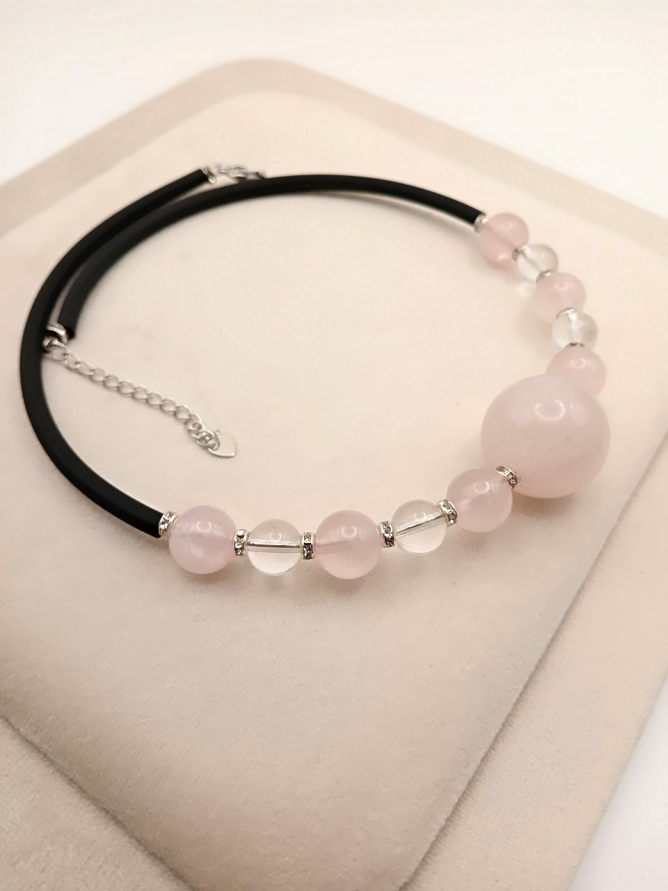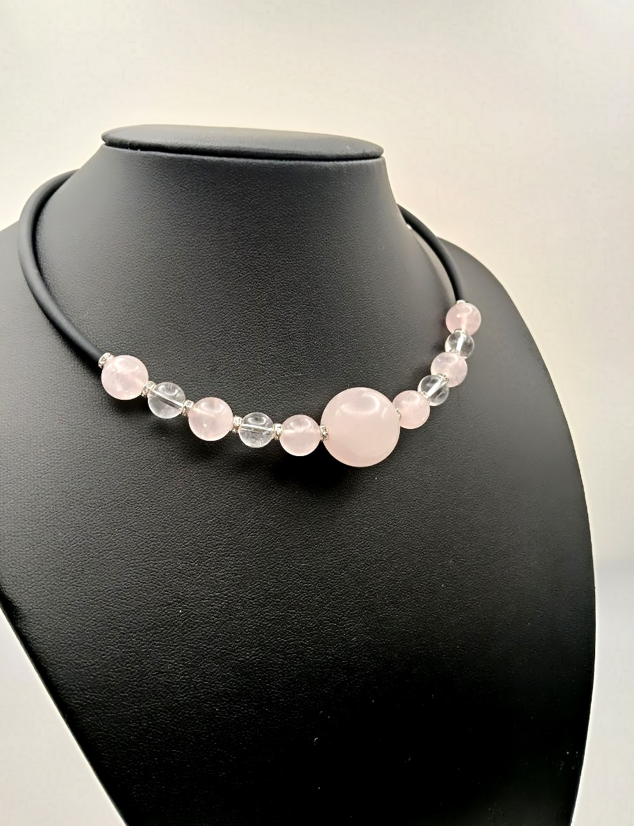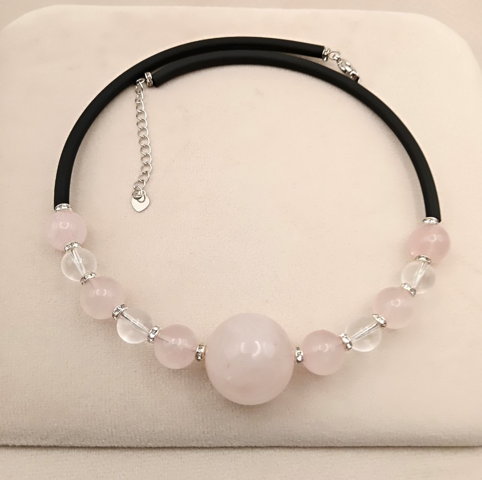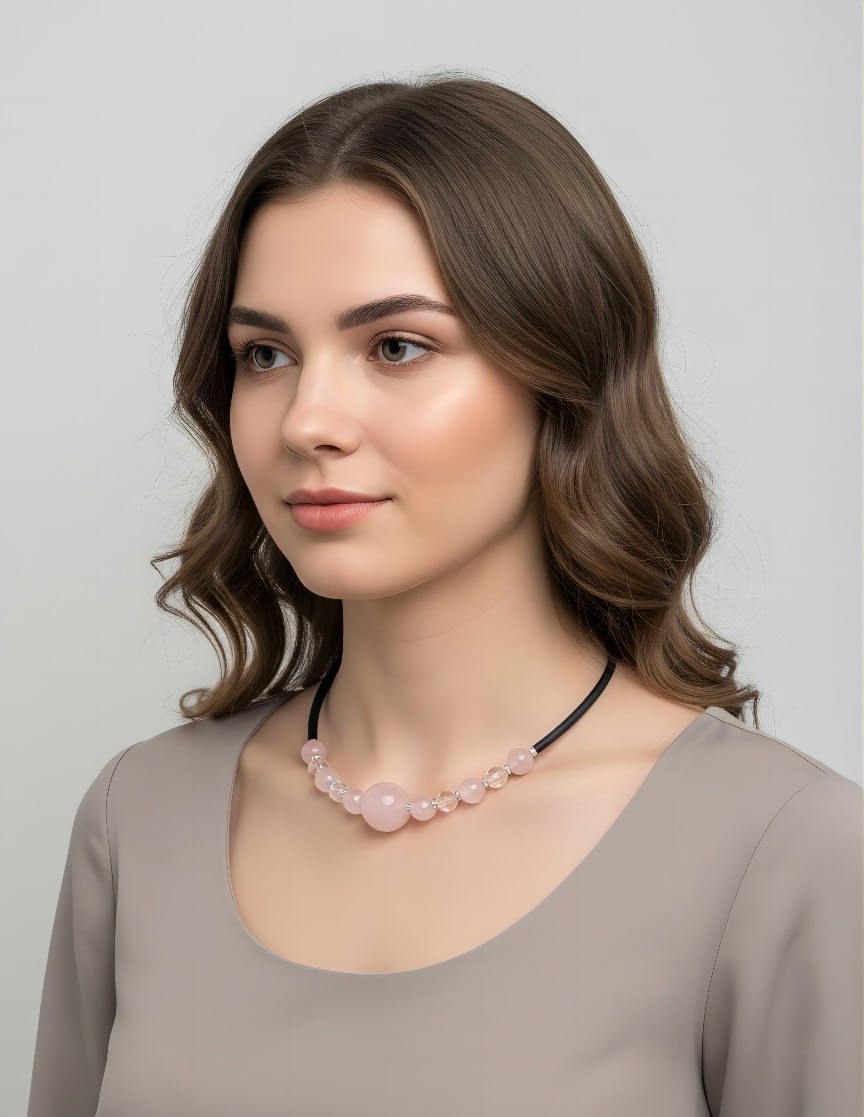 Изящный чокер с природным розовым кварцем и горным хрусталём — настоящее воплощение нежности и элегантности.