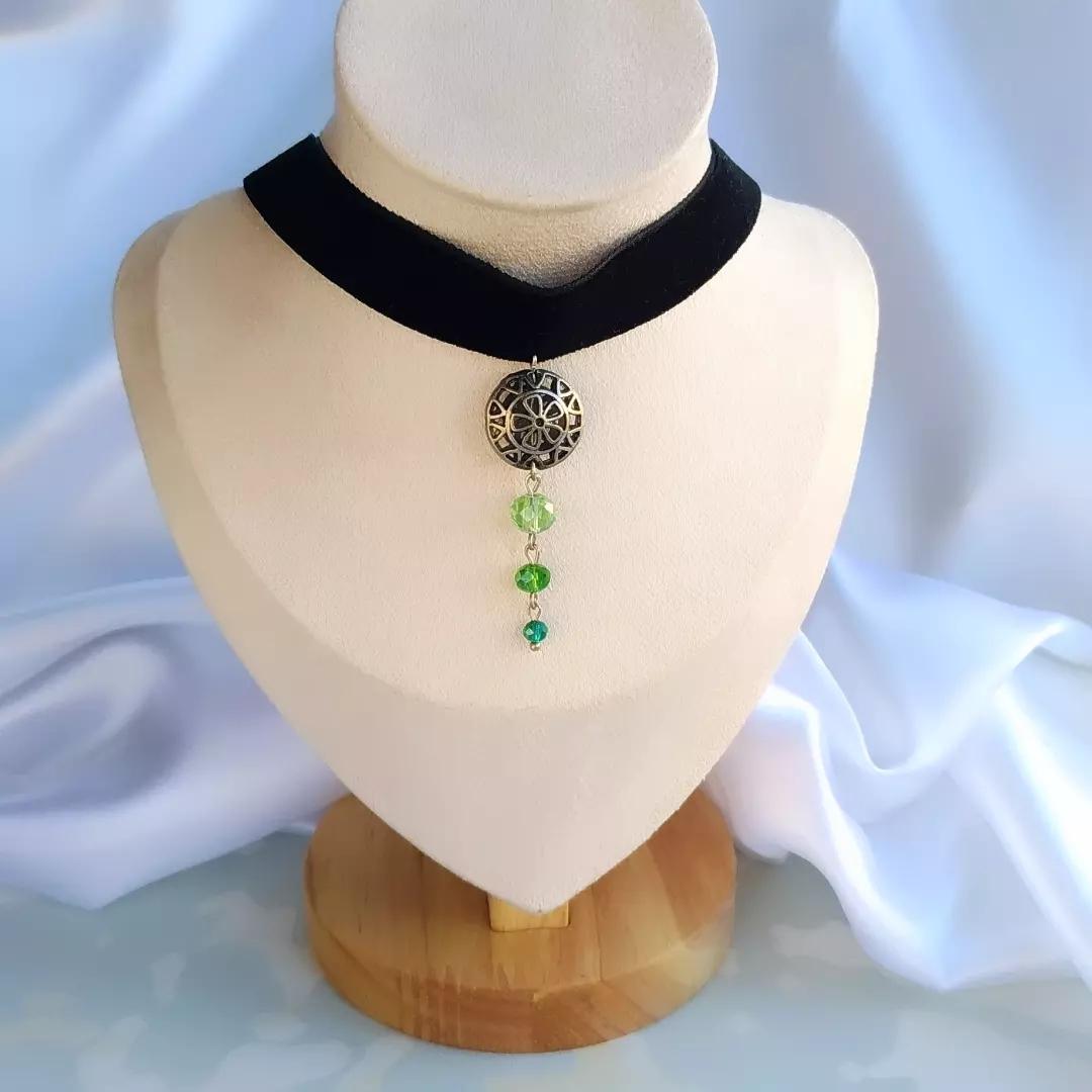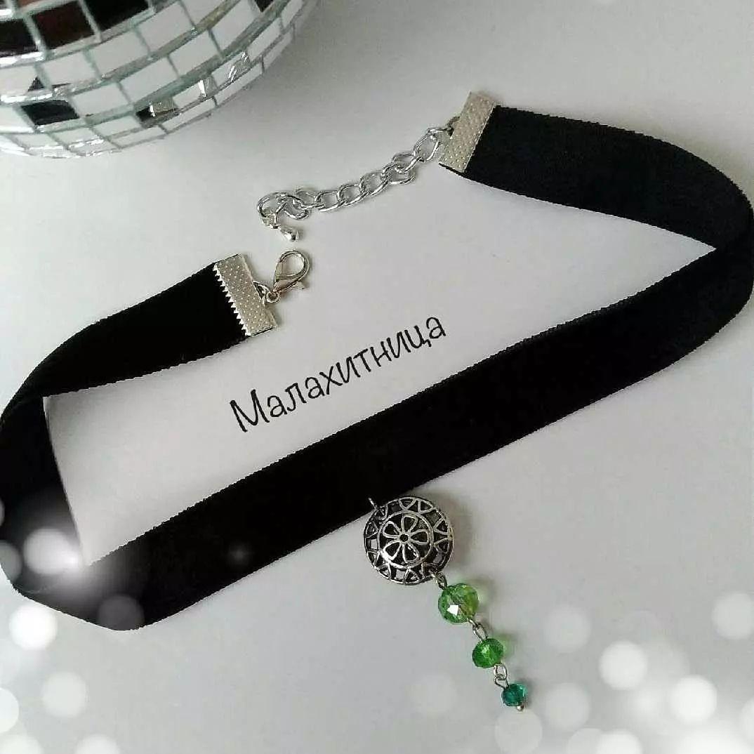 Итальянский бархат, мягкий и такой приятный, украшен красивой резной бусиной и каскадом разного размера и оттенка чешских стеклянных бусин.