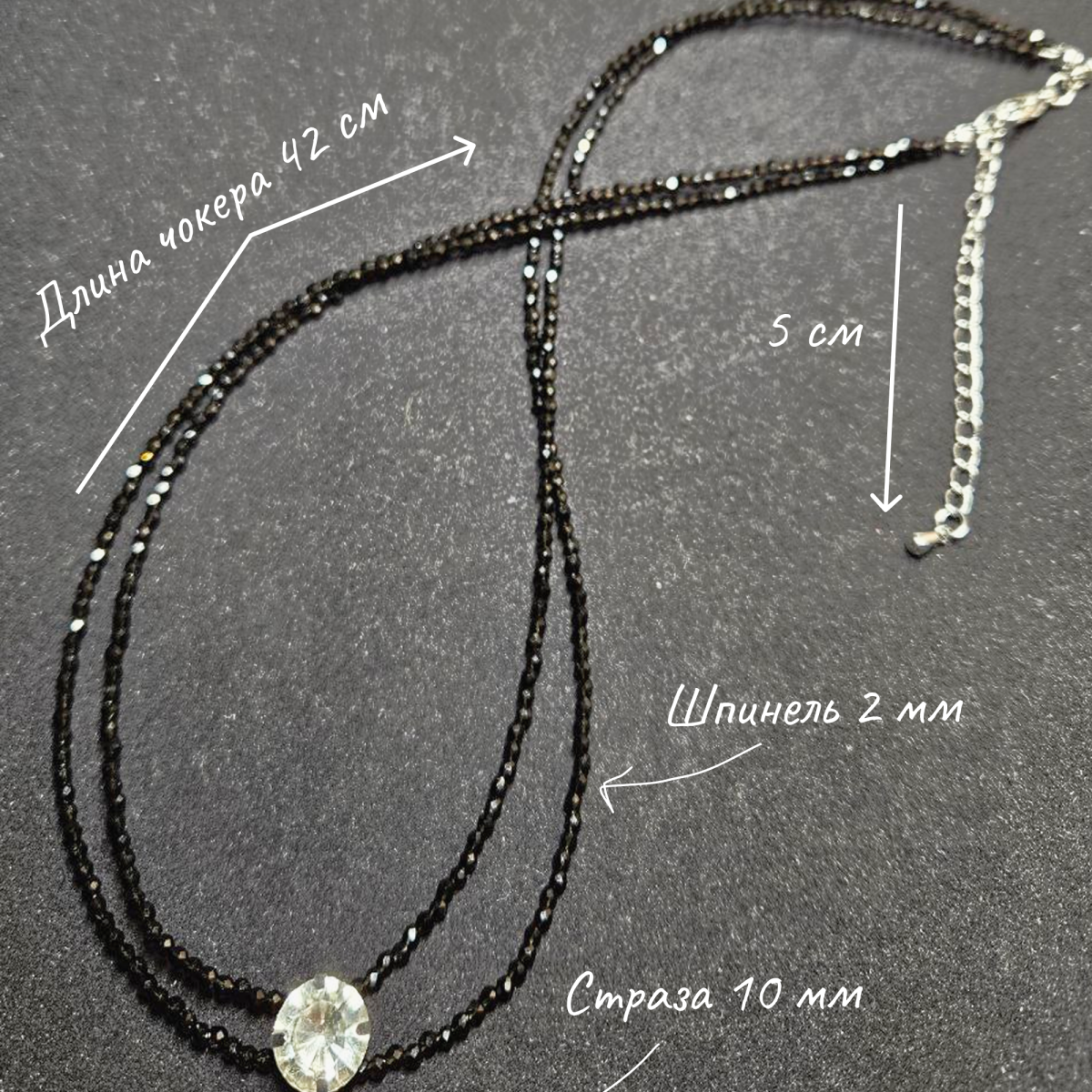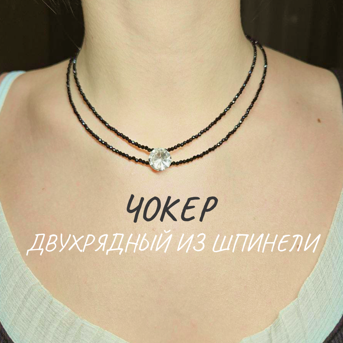 Элегантный двухрядный чокер выполнен из натуральной шпинели. Вставка - стеклянная страза 10 мм. Двухуровневый дизайн сочетает минималистичную фактуру и глубокий черный оттенок, идеально дополняя как повседневный образ, так и вечерний гардероб. Ручная работа гарантирует уникальность каждого элемента, а надежный карабин обеспечивает комфорт при использовании.