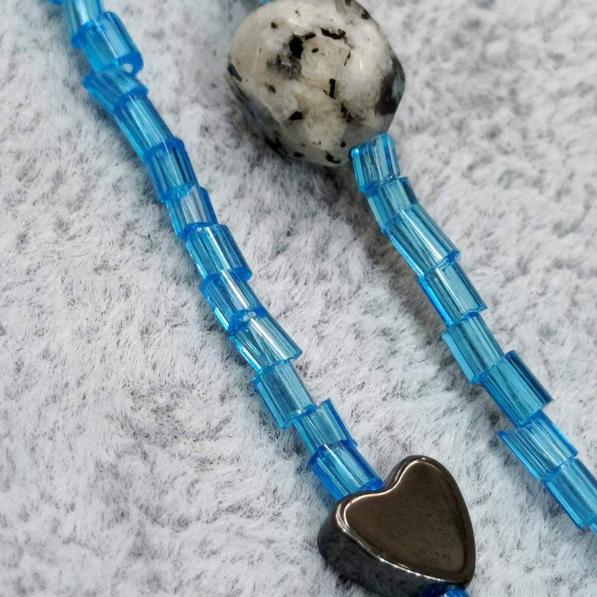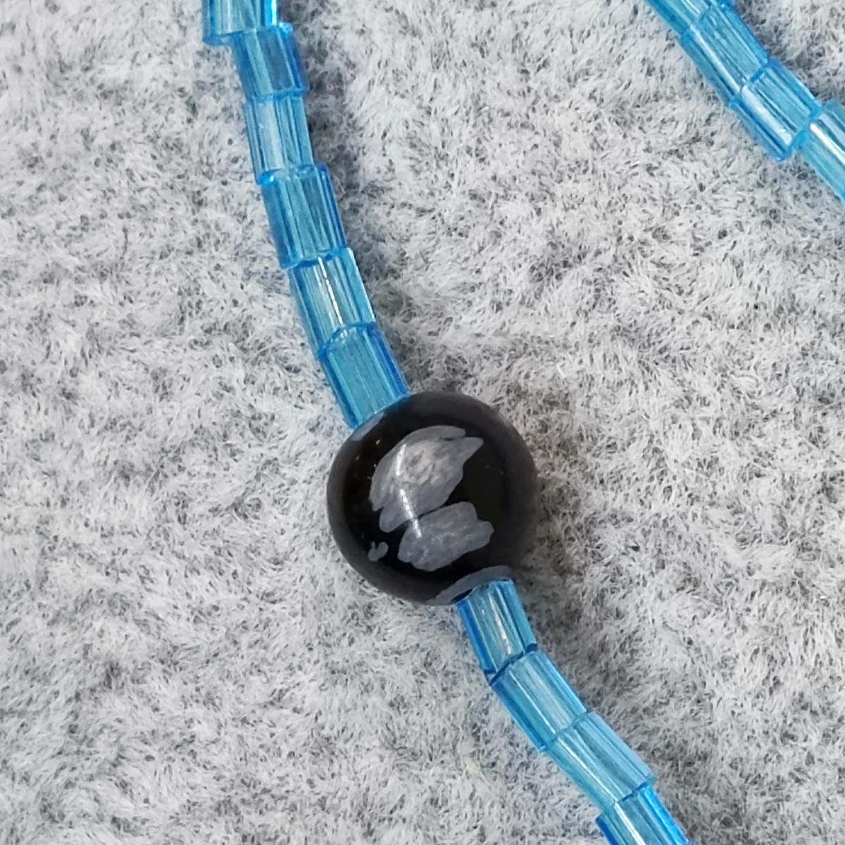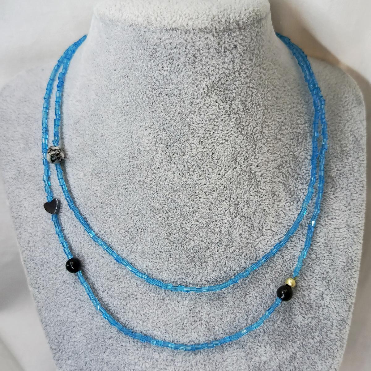 Двойной чокер из бисера с азуритом, обсидиан ом и гематитом.