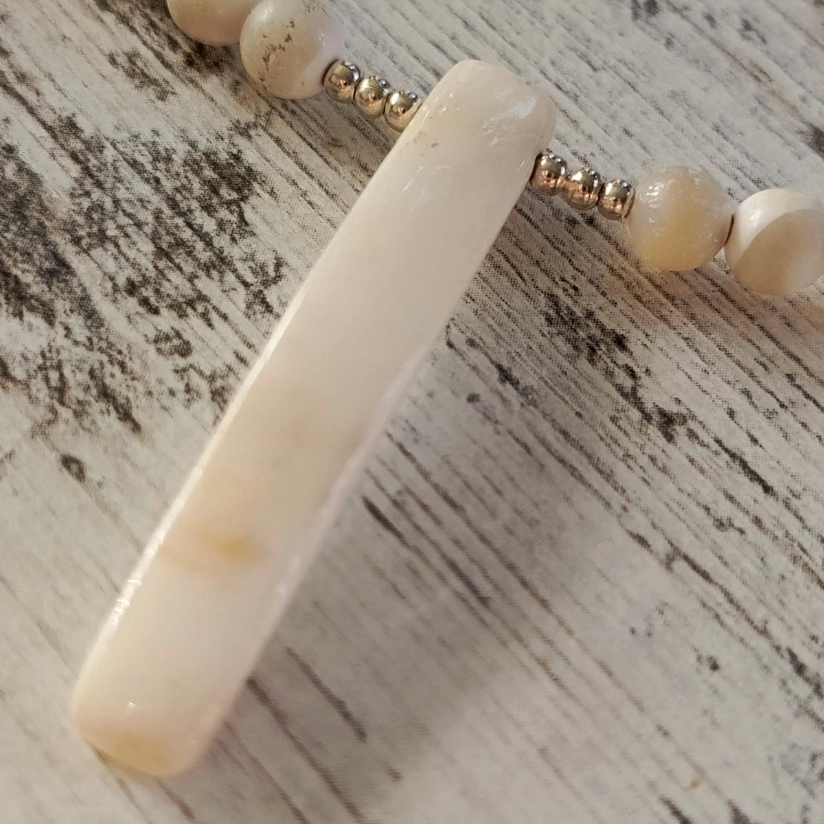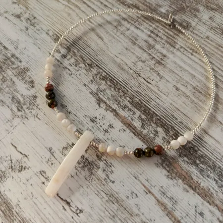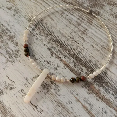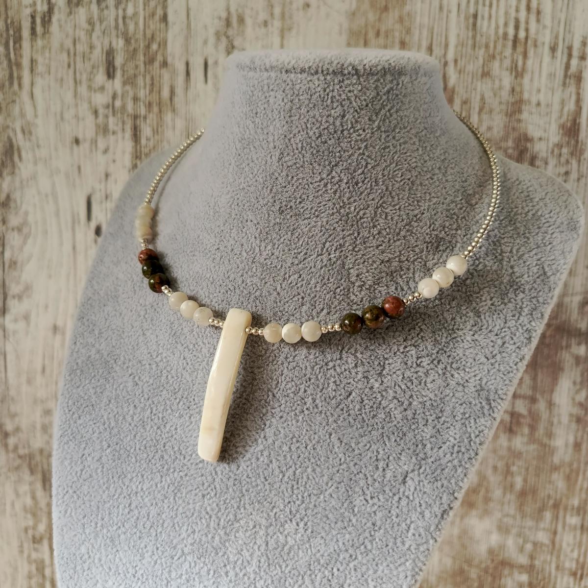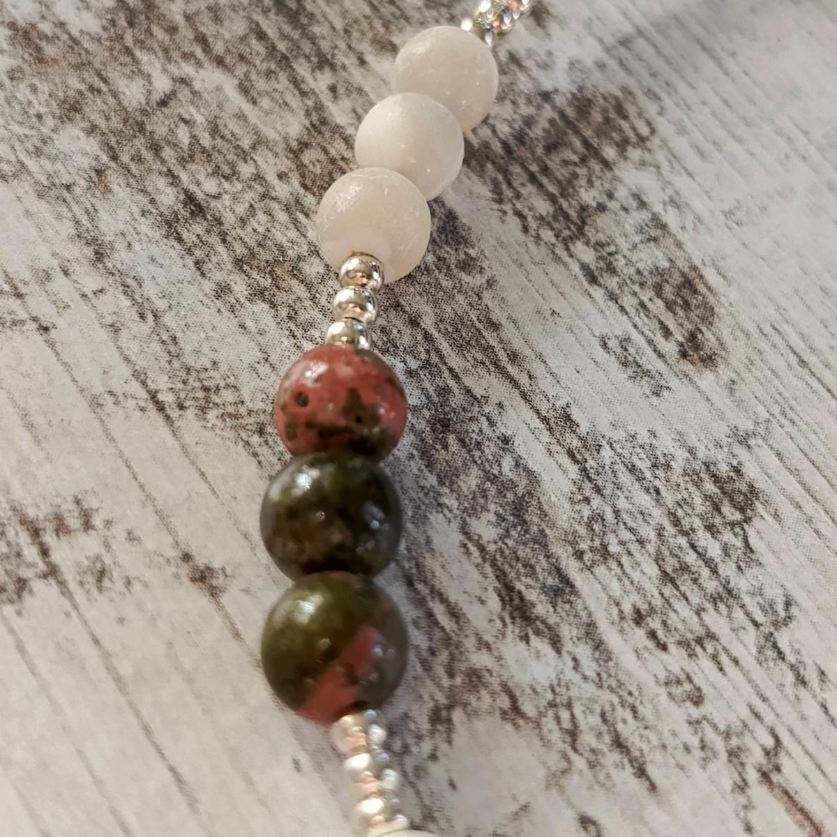 Сочетание перламутра и унакита создает гармоничный союз энергий очищения, эмоционального исцеления и материального благополучия.