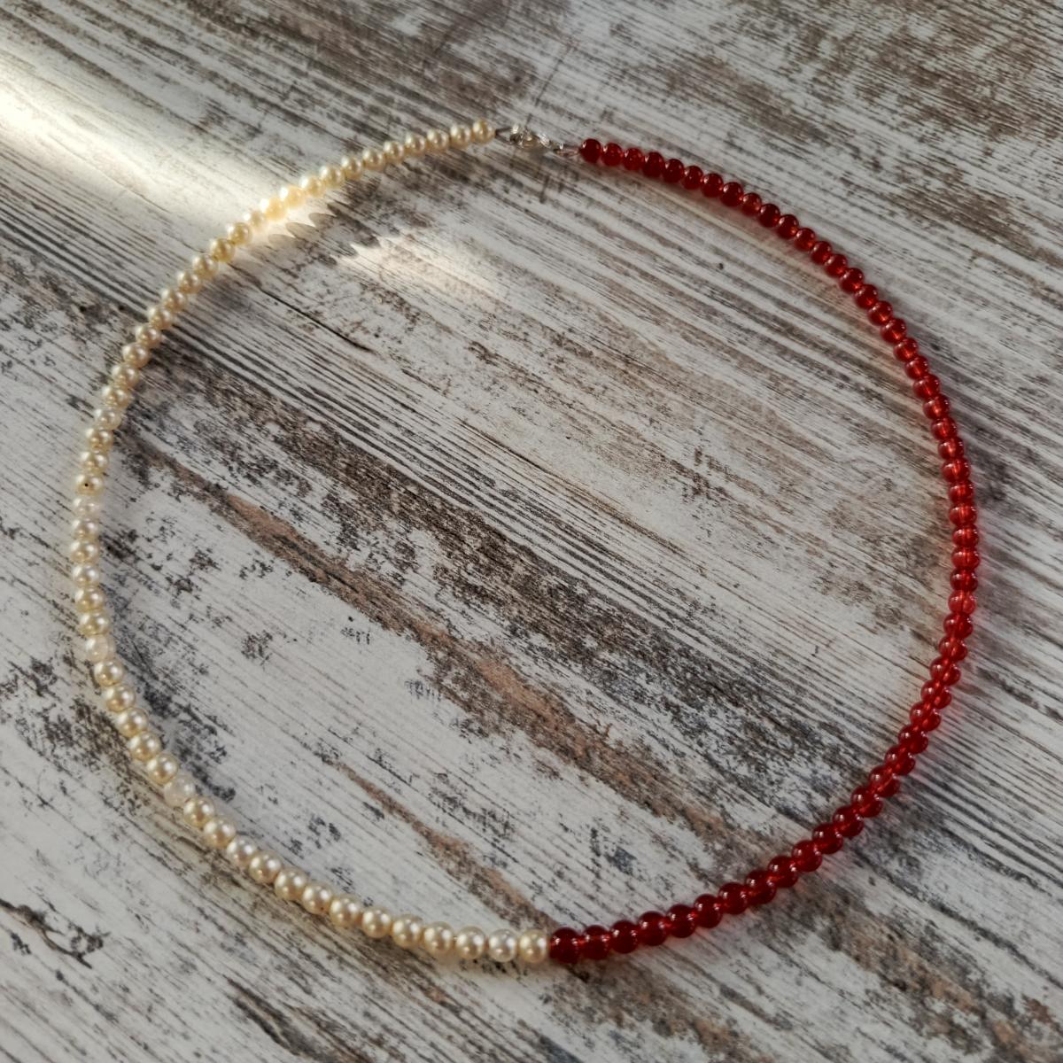 Чокер с жемчугом (имитация) и красным янтарем, на мемори-основе под съемную бусину, подвеску или самостоятельного ношения.