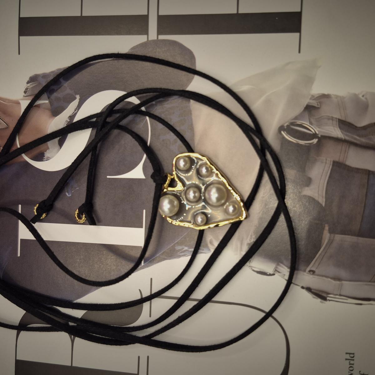 Чокер-шнурок на шею из натуральной замши черного цвета длиной 145 см с кулоном в виде сердца