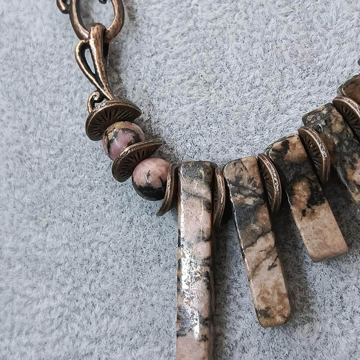 Колье с родонитом в бронзе.