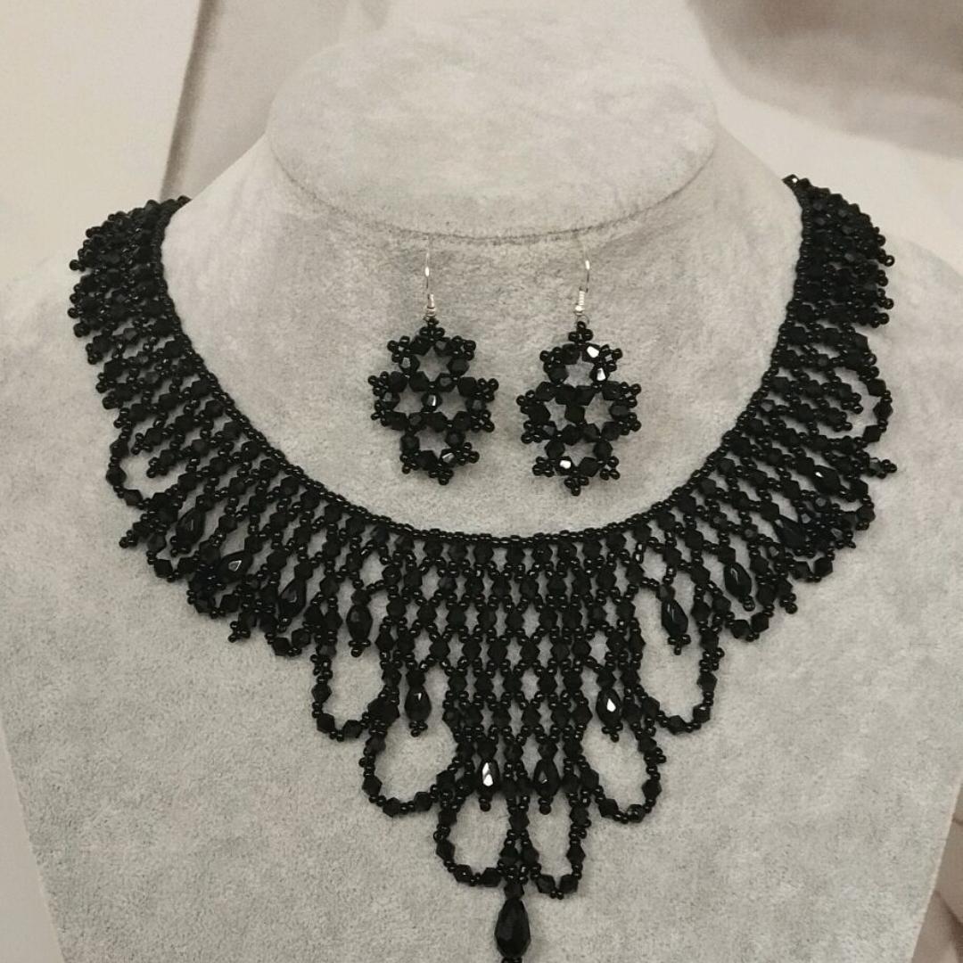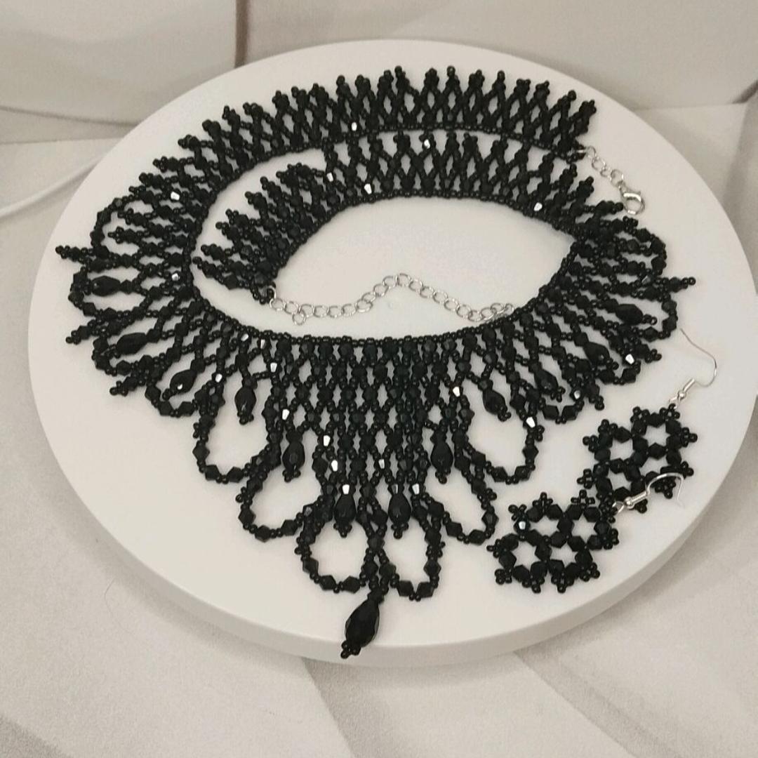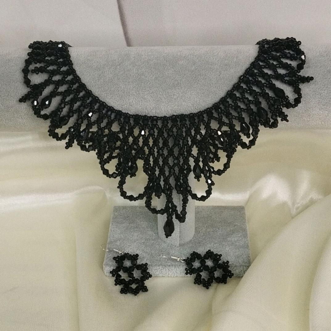 Колье "Чёрный Лебедь" и серьги выполнены из биконуса и чешского бисера.