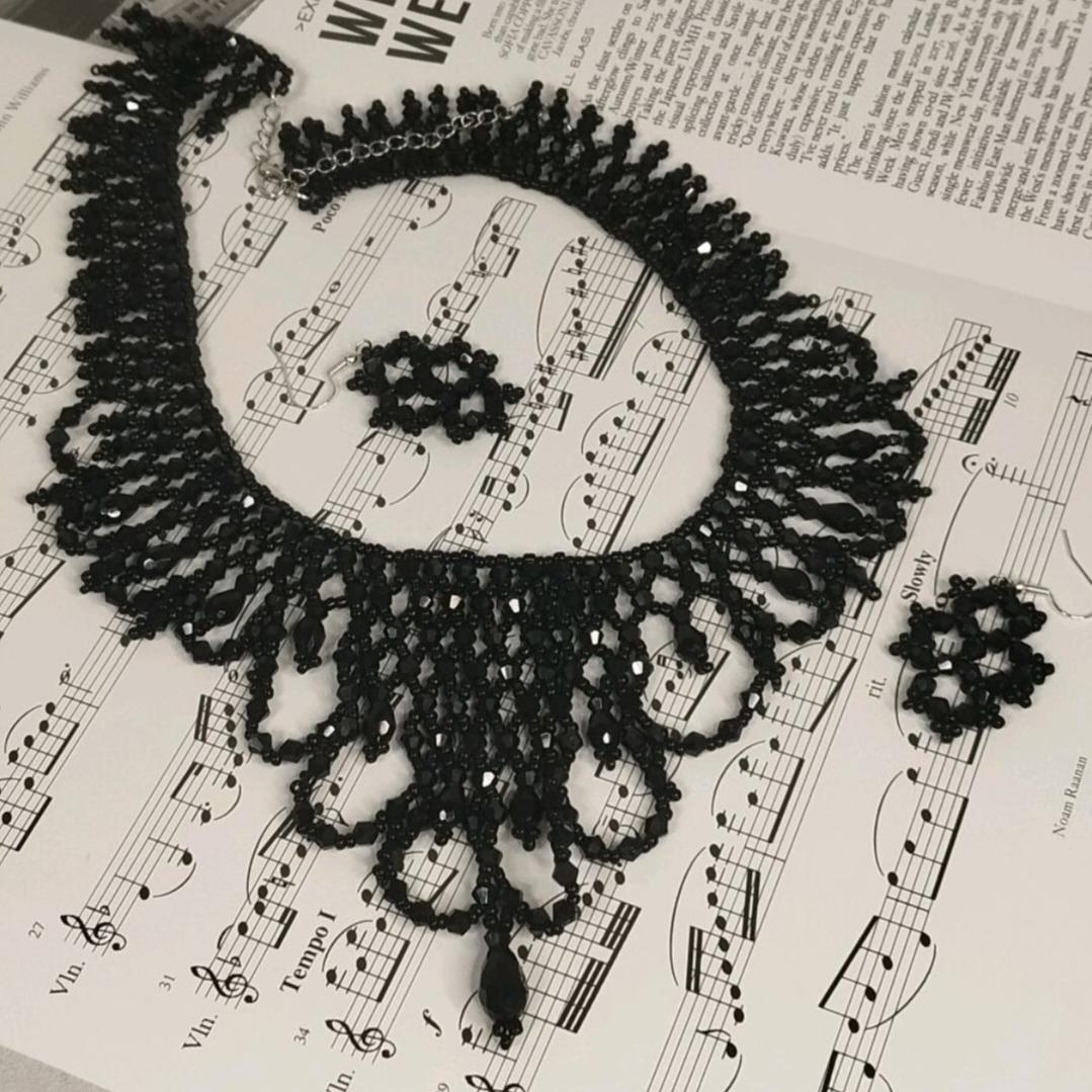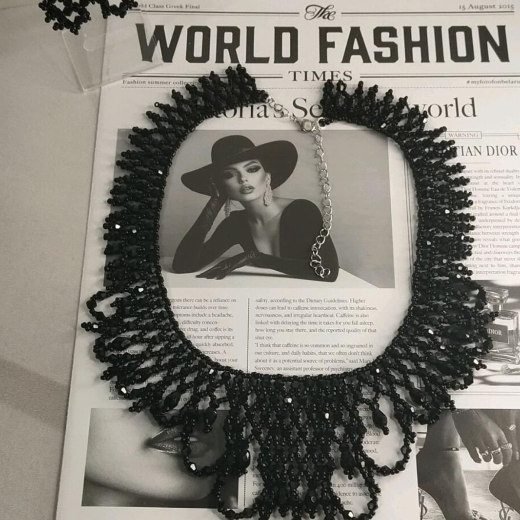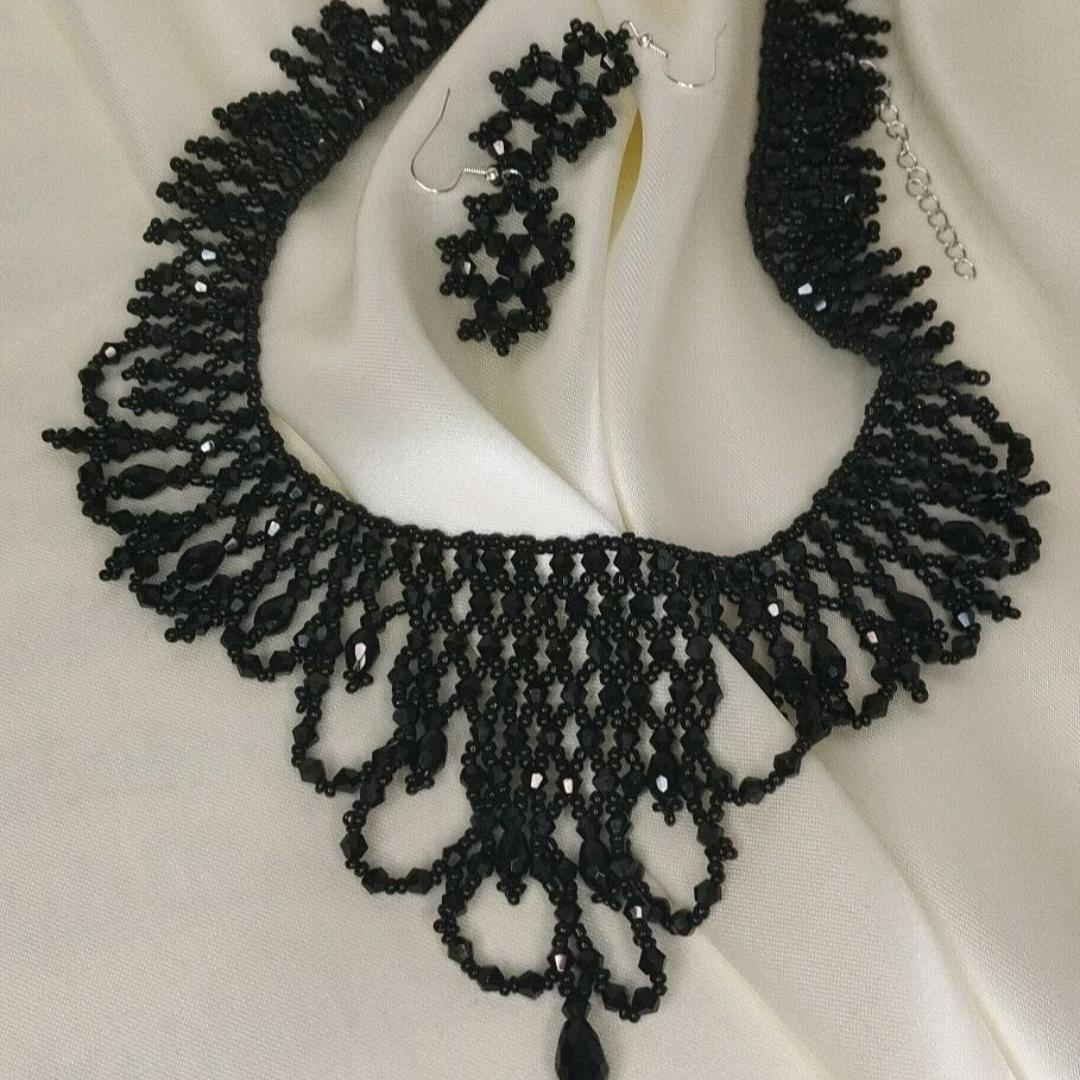 Колье "Чёрный Лебедь" и серьги выполнены из биконуса и чешского бисера.