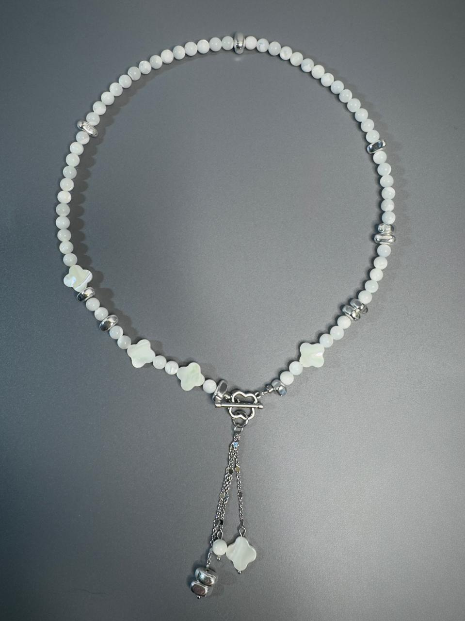 Колье из натурального перламутра и гематита.