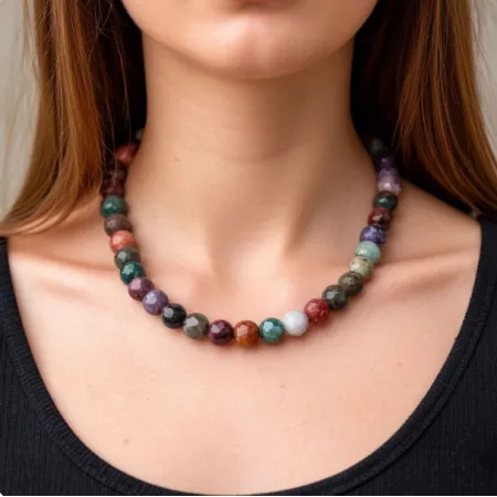 Чокер из индиского агата с интересной агранкой, размер бусин 4-4,2см, разноцветный.