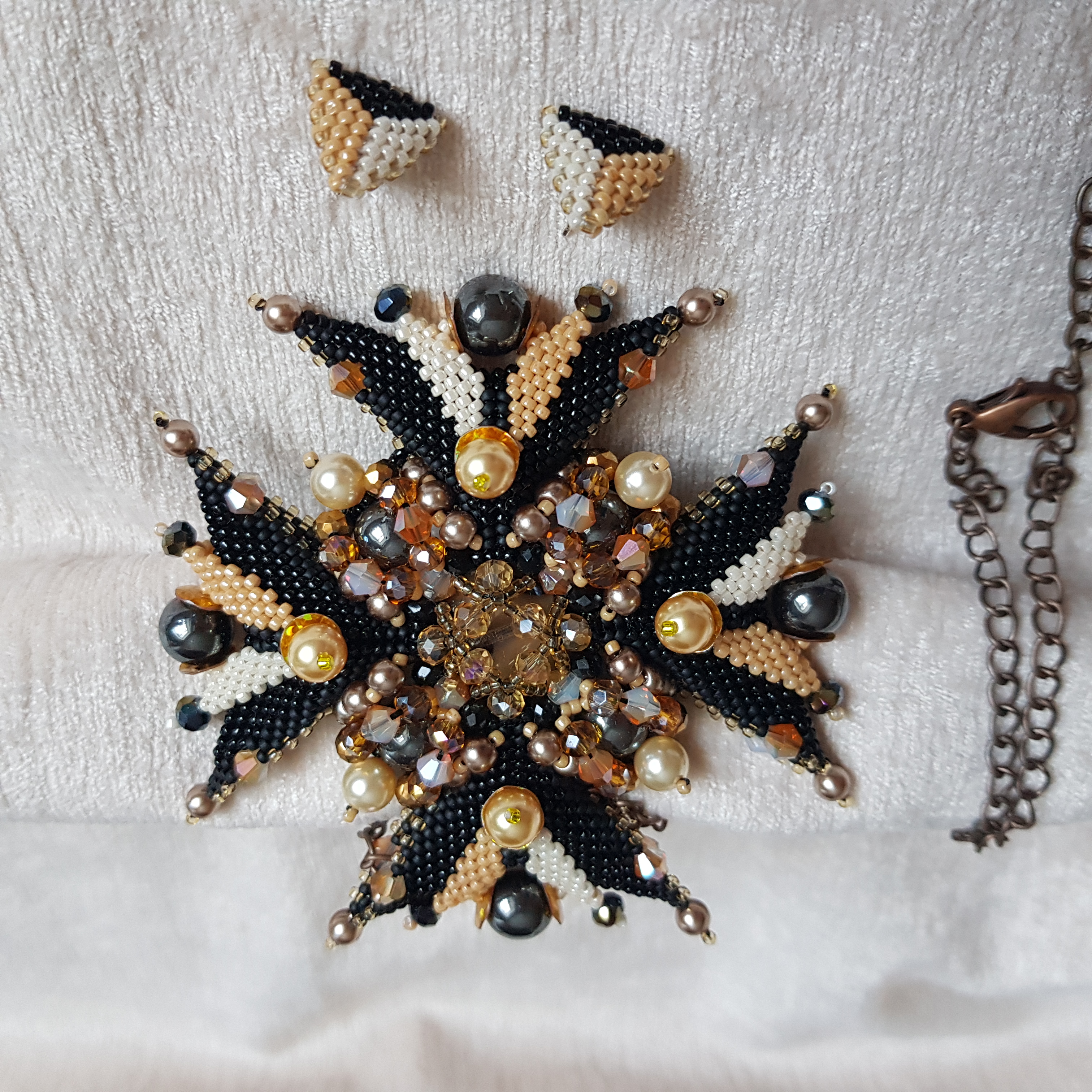 Брошь-орден-подвеска и Серьги "Гематит"