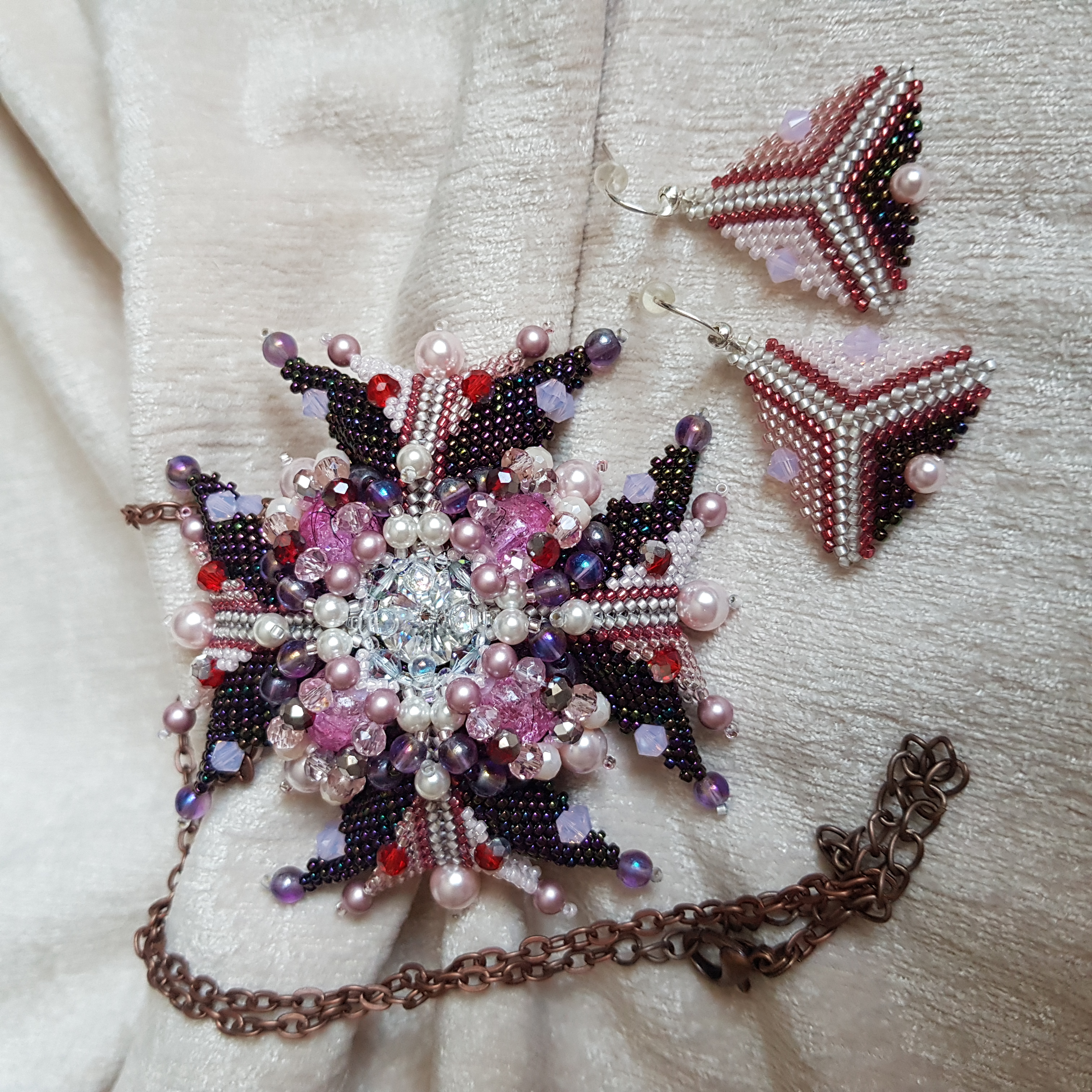 Брошь-орден-подвеска и Серьги "Воздушная сливка"
