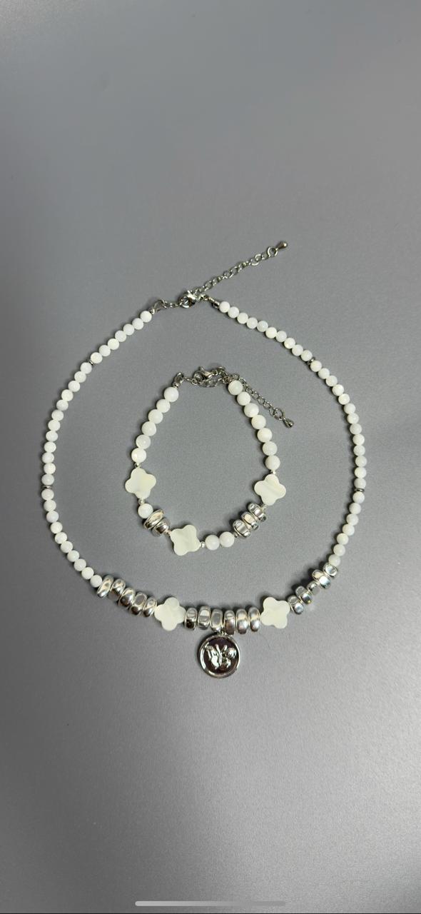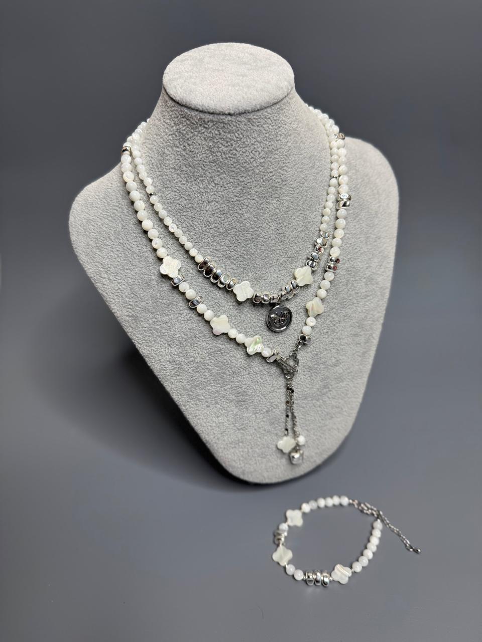 Минимальное количество для товара "Комплект украшений Чокер из натурального перламутра и гематита, с подвеской с бабочкой и браслет" 1.