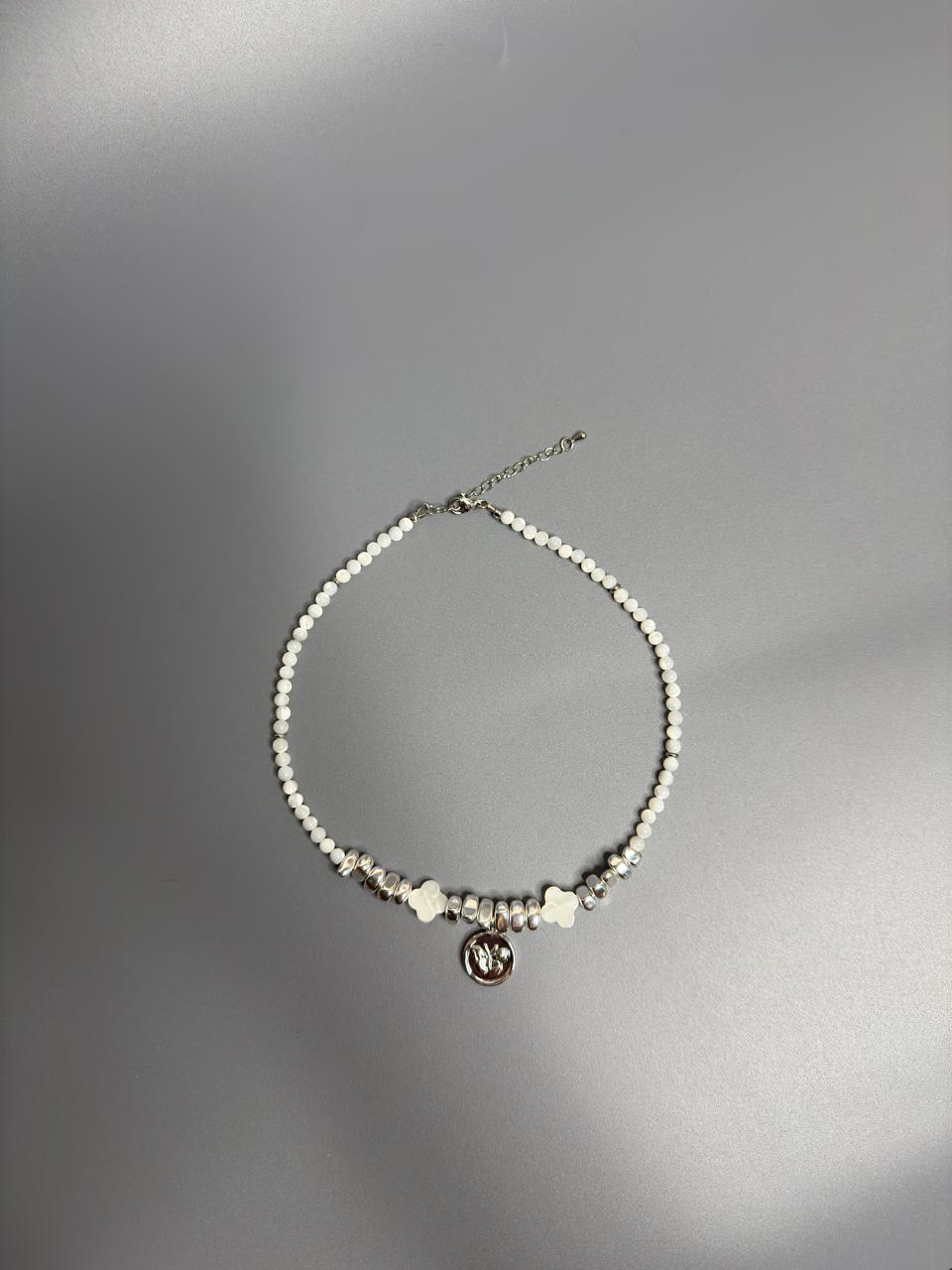 Чокер из натурального перламутра и гематита, с подвеской с бабочкой.