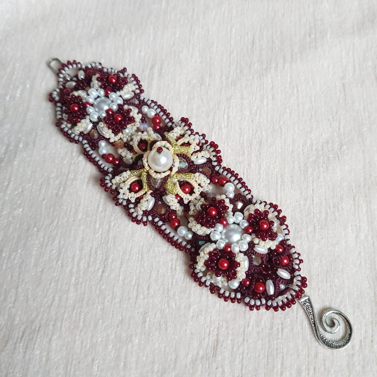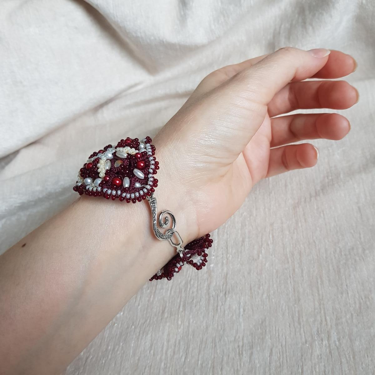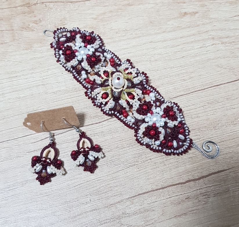 Комплект: Браслет и серьги "Вишня на креме"