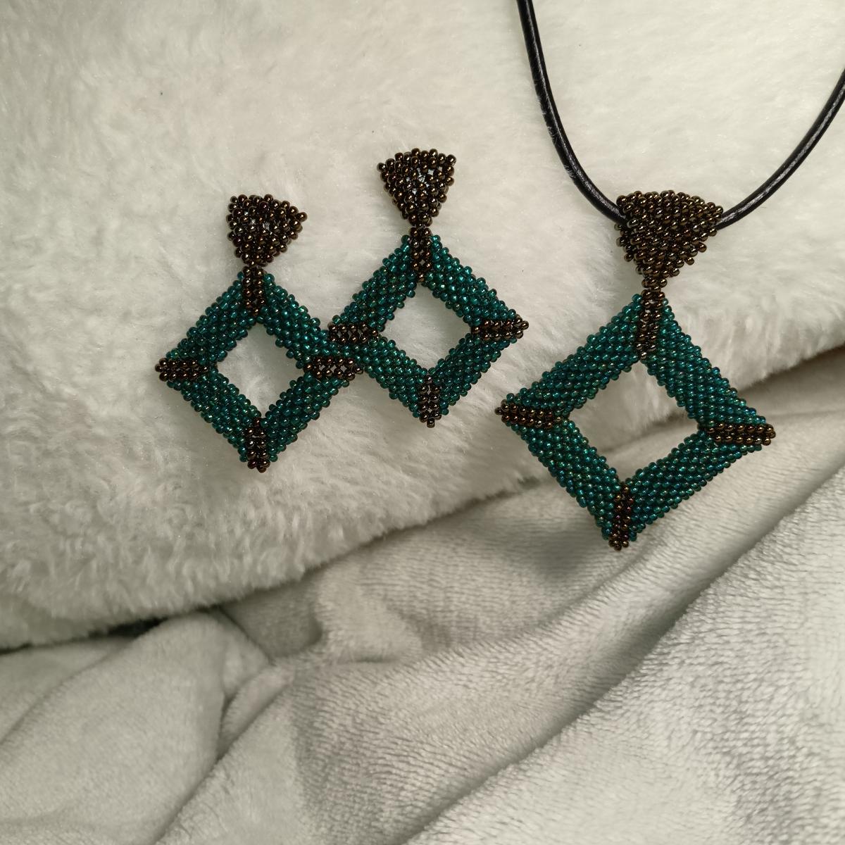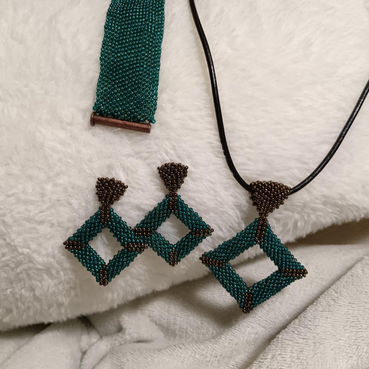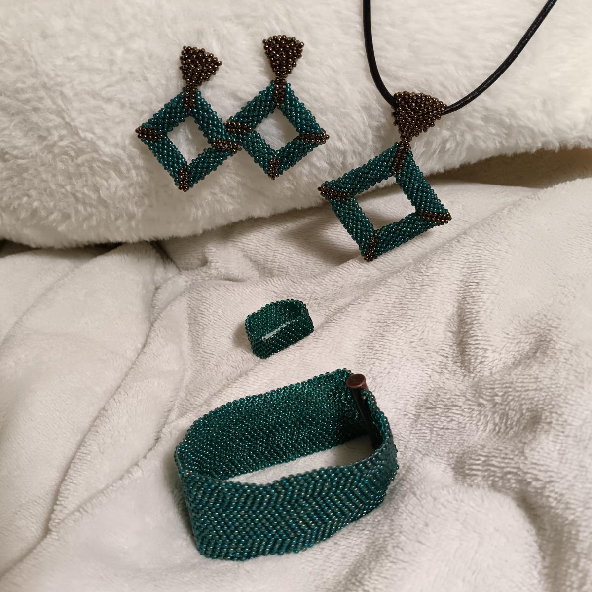 комплект "Малахит" серьги и подвеска + браслет и колечко в подарок