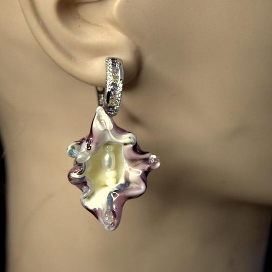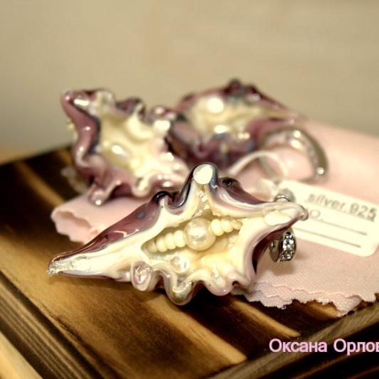 Комплект украшений выплавлен мной из муранского стекла на открытом огне, вручную. Точный повтор в этой технике невозможен, поэтому каждое украшение само по себе эксклюзивно. Фурнитура родированное серебро 925. Деревянная шкатулка,салфетка для чистки серебра, мешочек из фибры для хранения в подарок. Серьги и кулон. Английская застежка,швензы очень удобные. Бейл на кулоне, тоже с застежкой, можно одеть на любую цепочку.