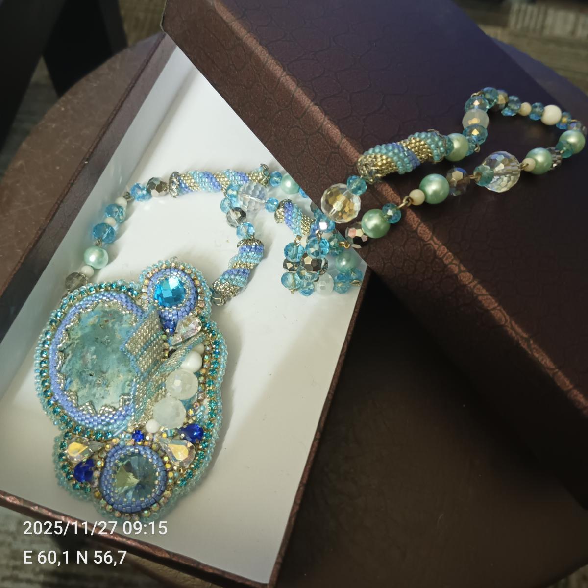Брошь ручной работы из японского бисера с кабошоном ручной работы и стразами Сваровски .Цепочка из бисерных бусин ручной работы , из жемчужных и стеклянных бусин.Обратная сторона из итальянской эко-кожи , фурнитура металлическая. Красивый подарок и великолепное украшение.