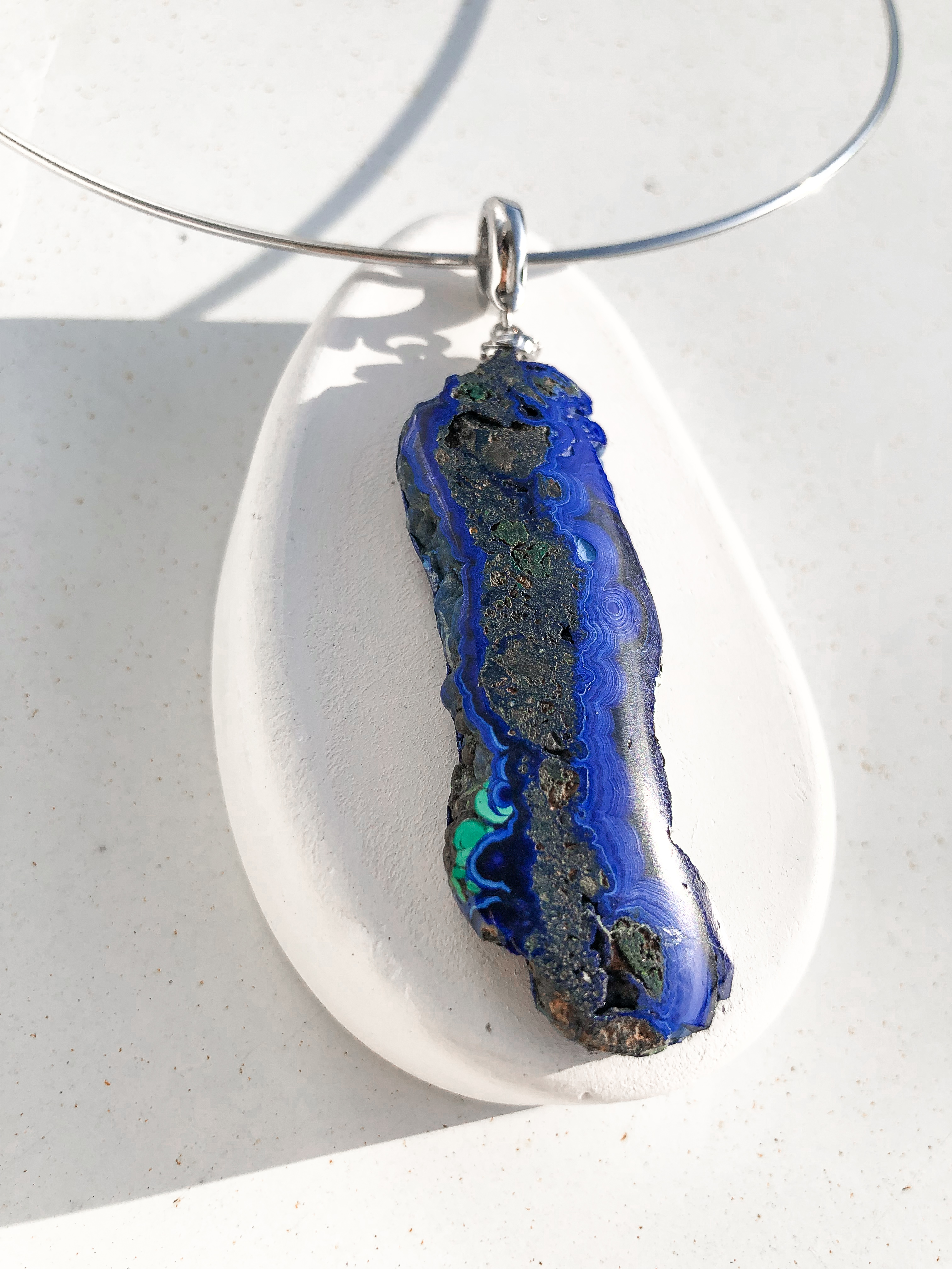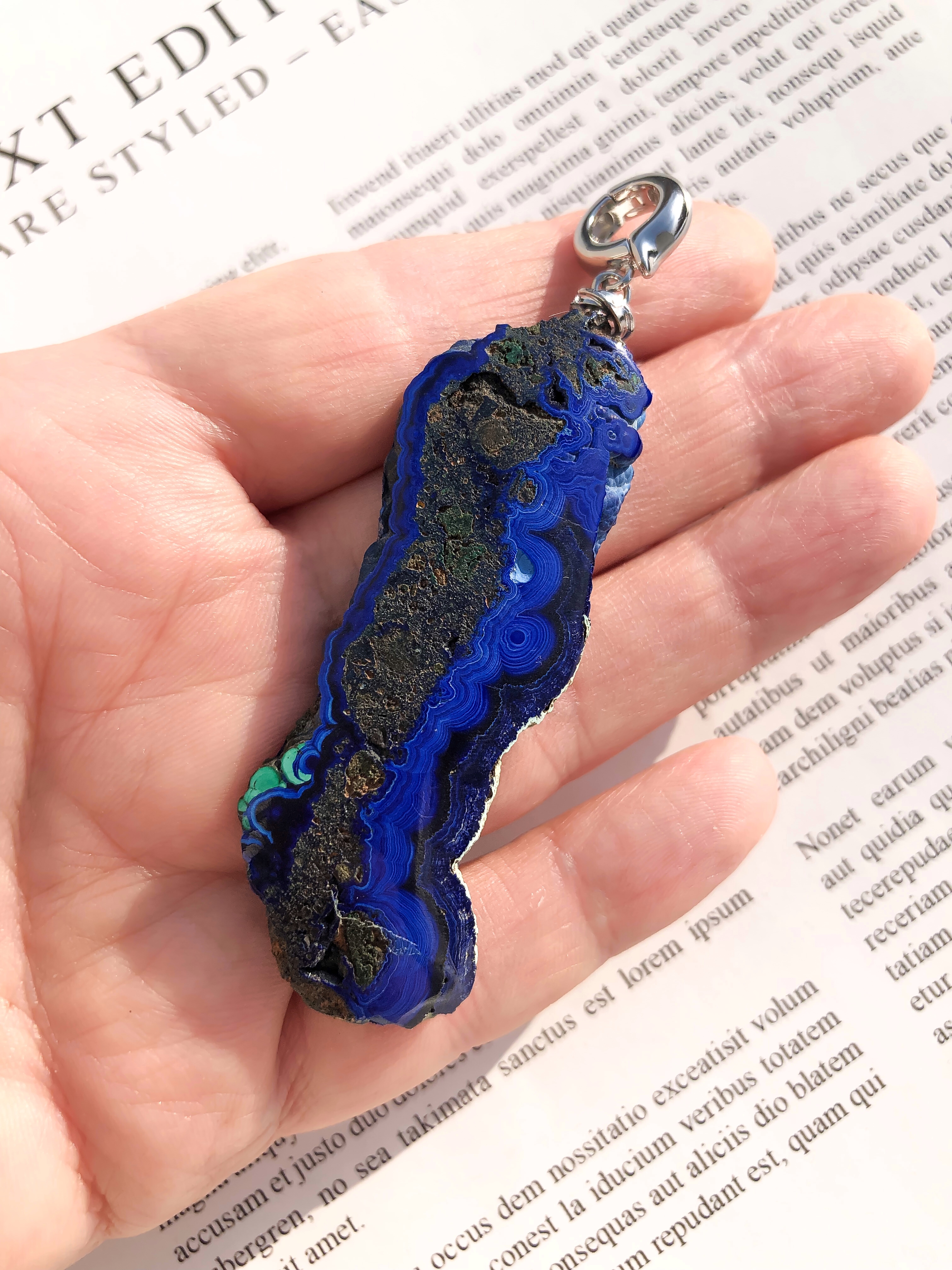 Эффектный, крупный, эксклюзивный кулон ручной работы из сибирского азурита для тех, кто выбирает лаконичные, но яркие акценты для своих образов.