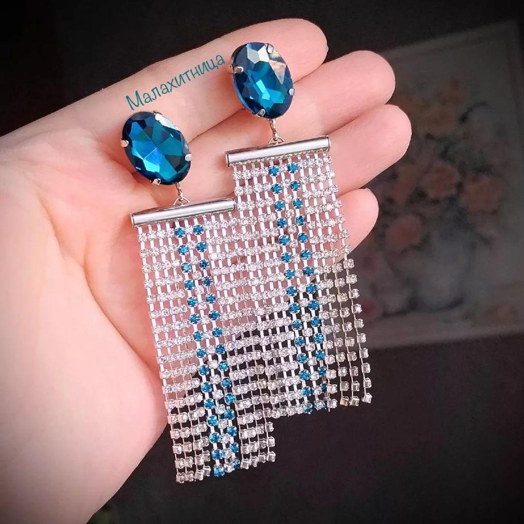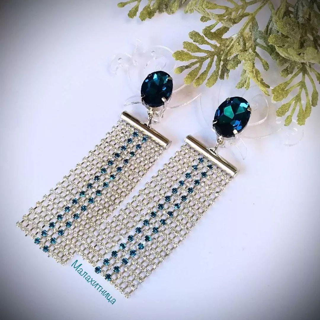 Украшение выполнено из россыпи страз на ленте и ярким бирюзовым кристаллом в основании клипс. Эти клипсы-серьги станут эксклюзивными в вашей коллекции украшений .