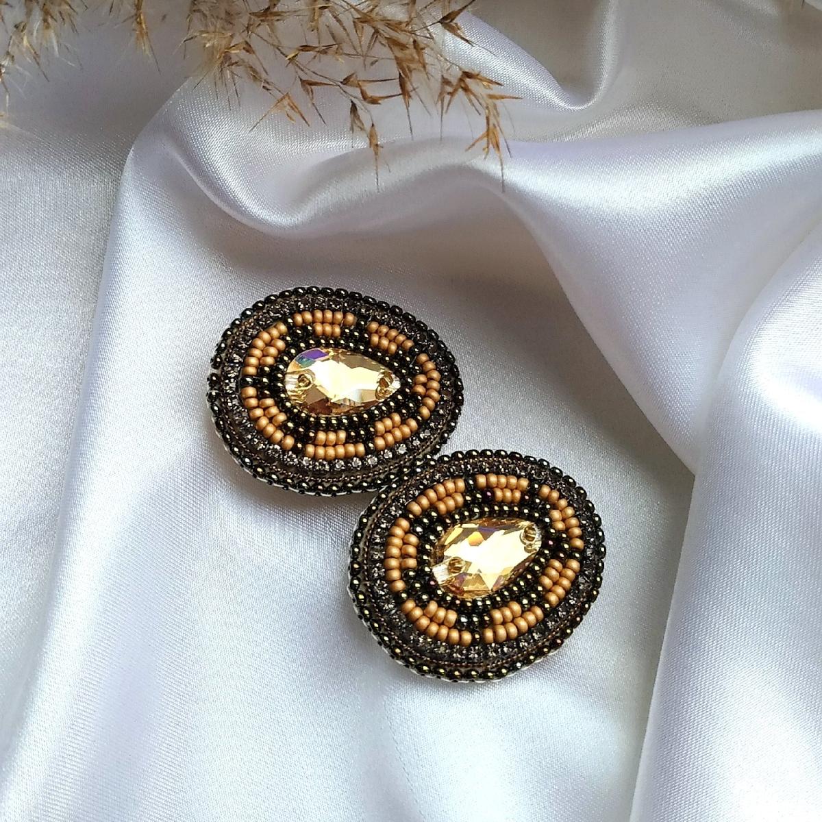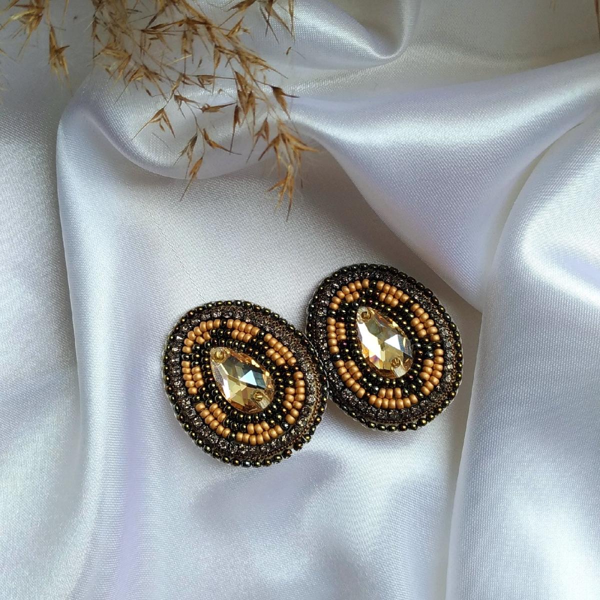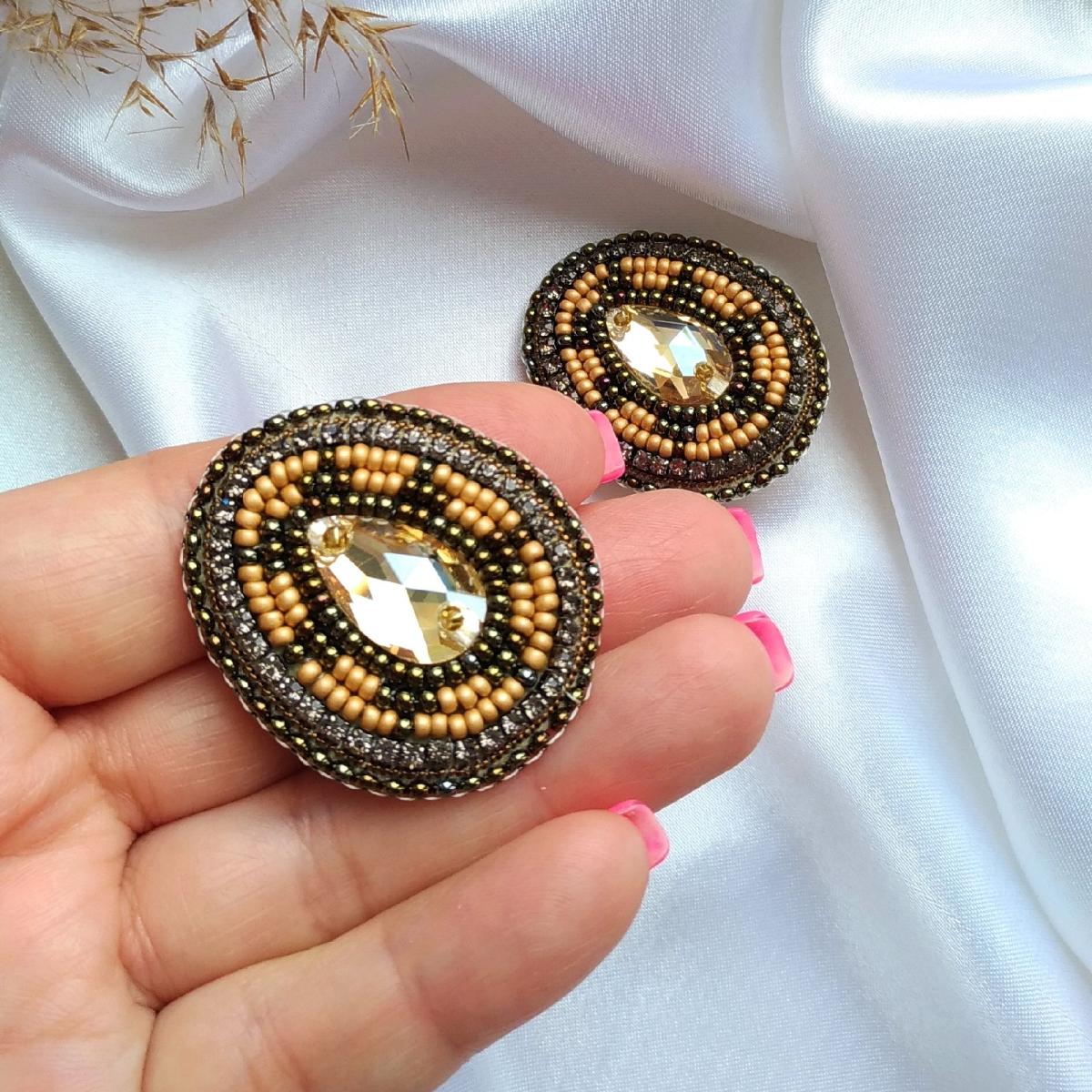 Материалы: кристаллы корейские, чешский бисер, стразовая цепь, канитель, основа для клипсв, экокожа