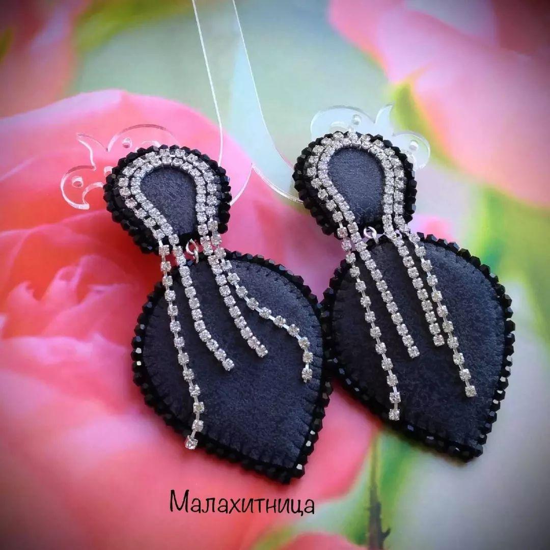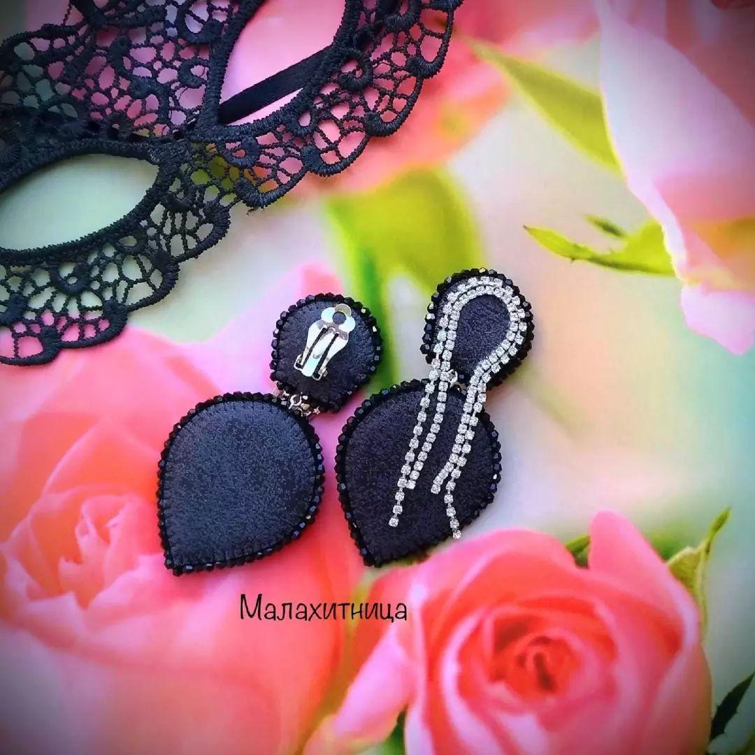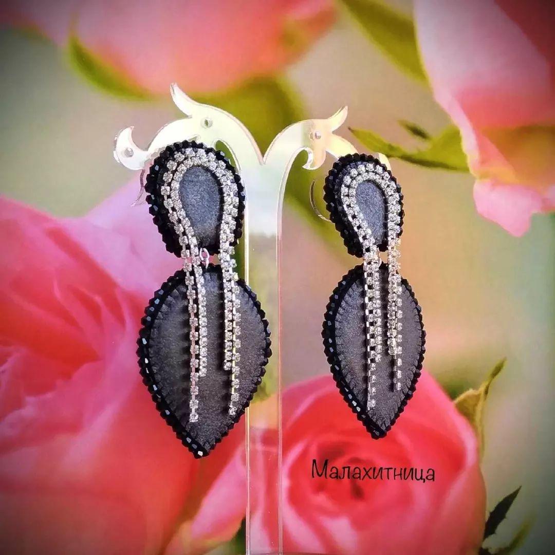 Общая длина 9 см. Сделаны из экокожи. Вышиты стразами. Обшиты бусинками. Легкие как перышко.