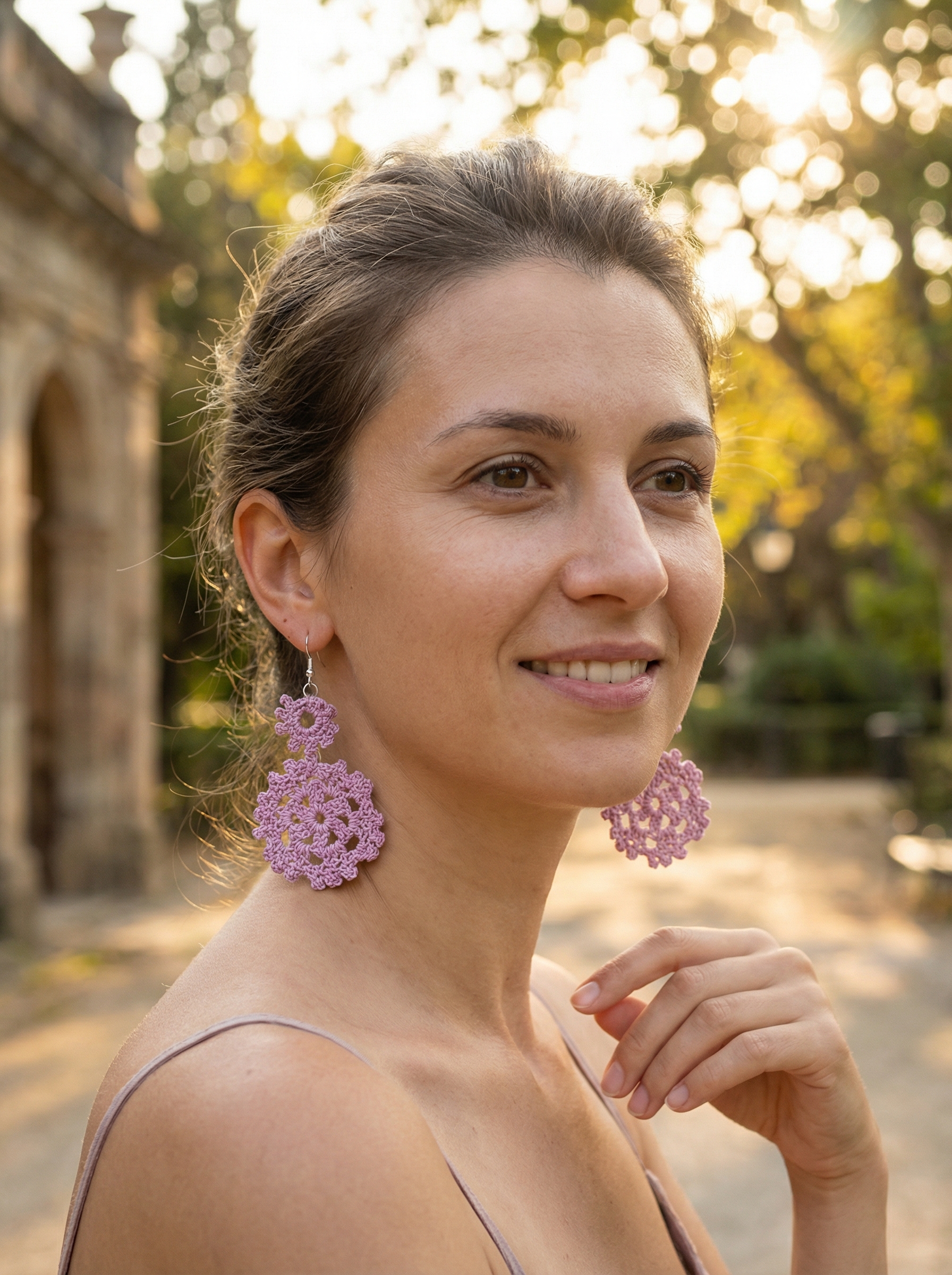 Замечательные двух ярусные сережки, сиреневого цвета, подойдут как на Новый год так и в любой другой праздник.