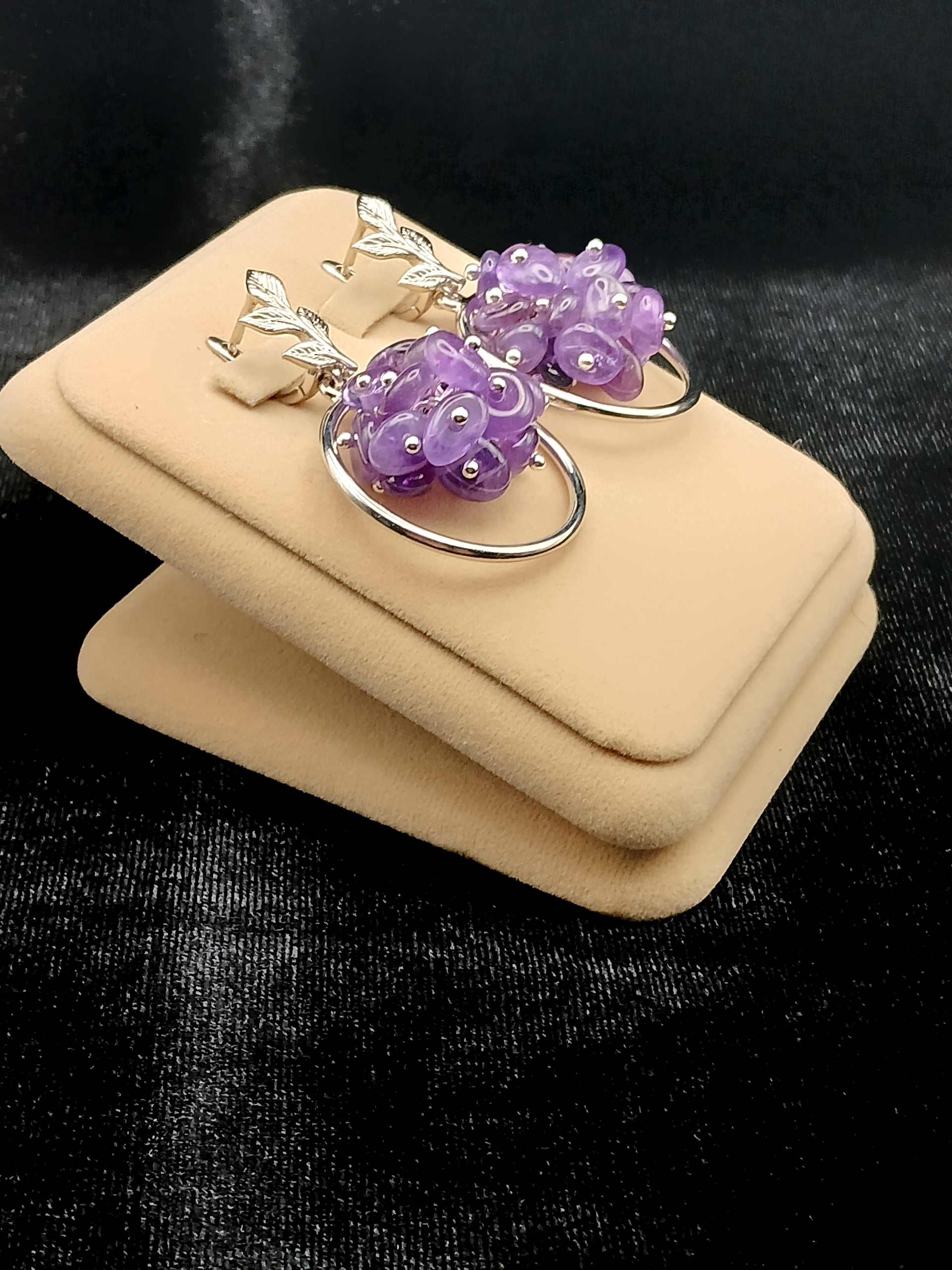 Подвеска в форме круга, гроздья аметиста и нежные швензы веточки.