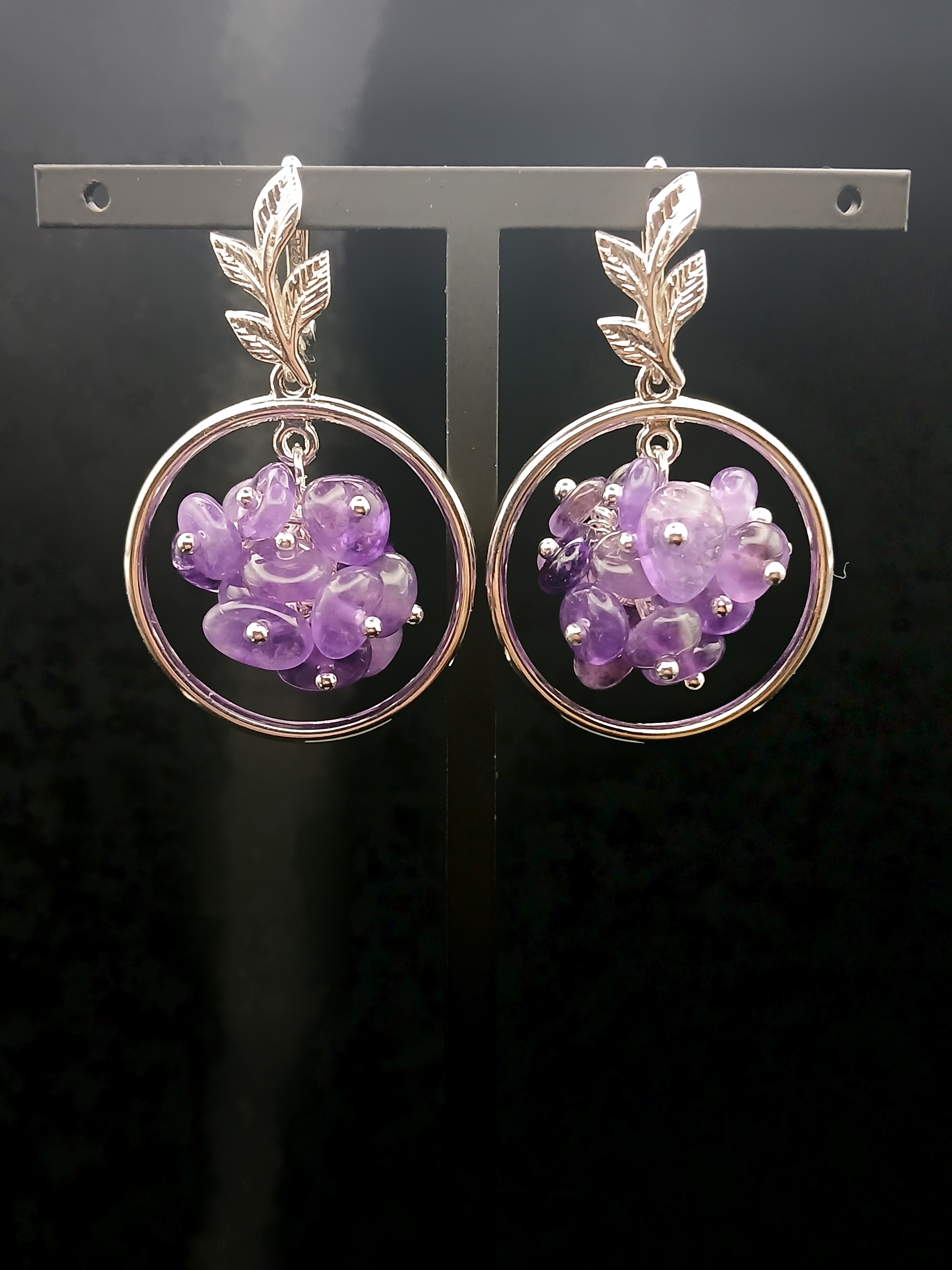 Подвеска в форме круга, гроздья аметиста и нежные швензы веточки.
