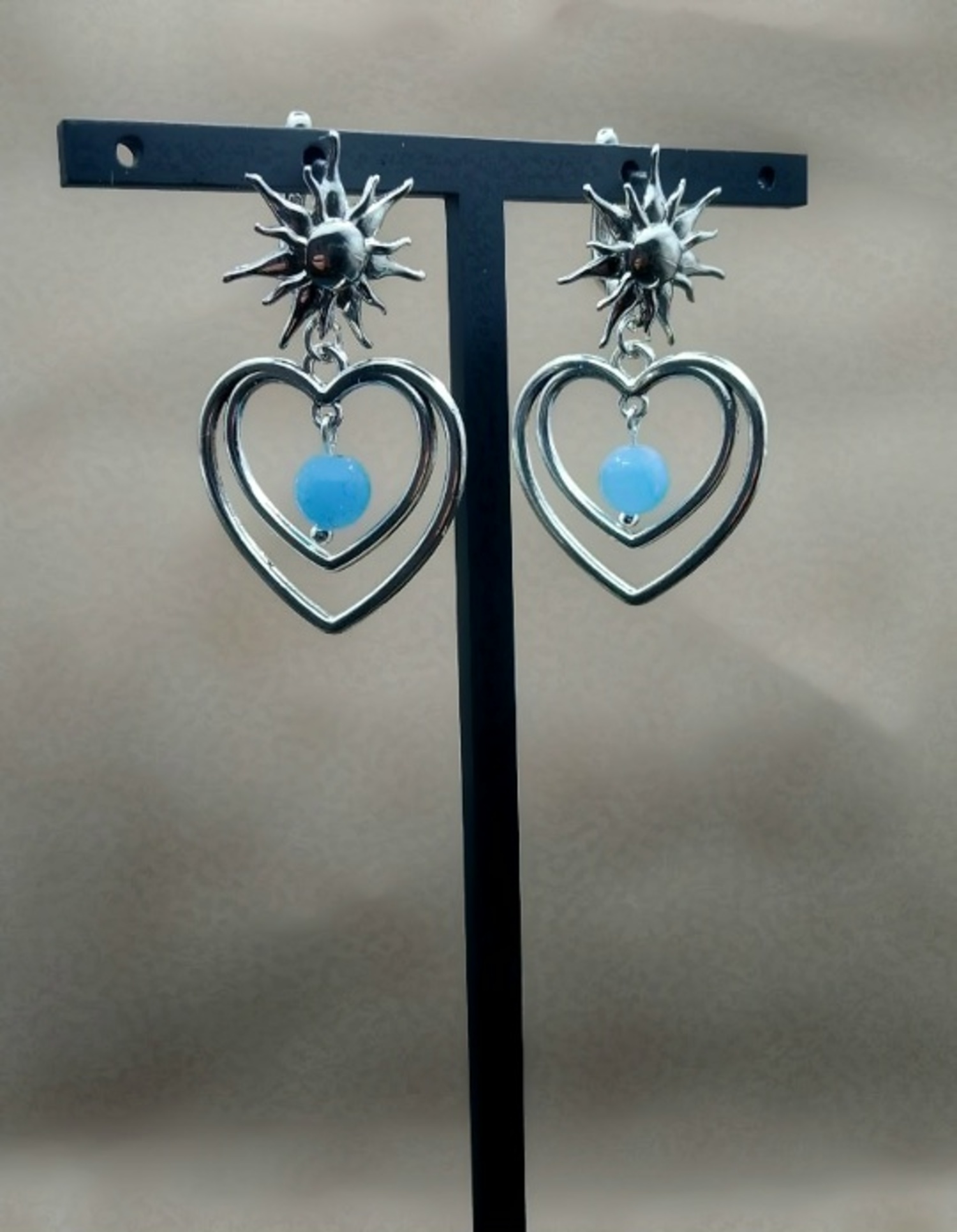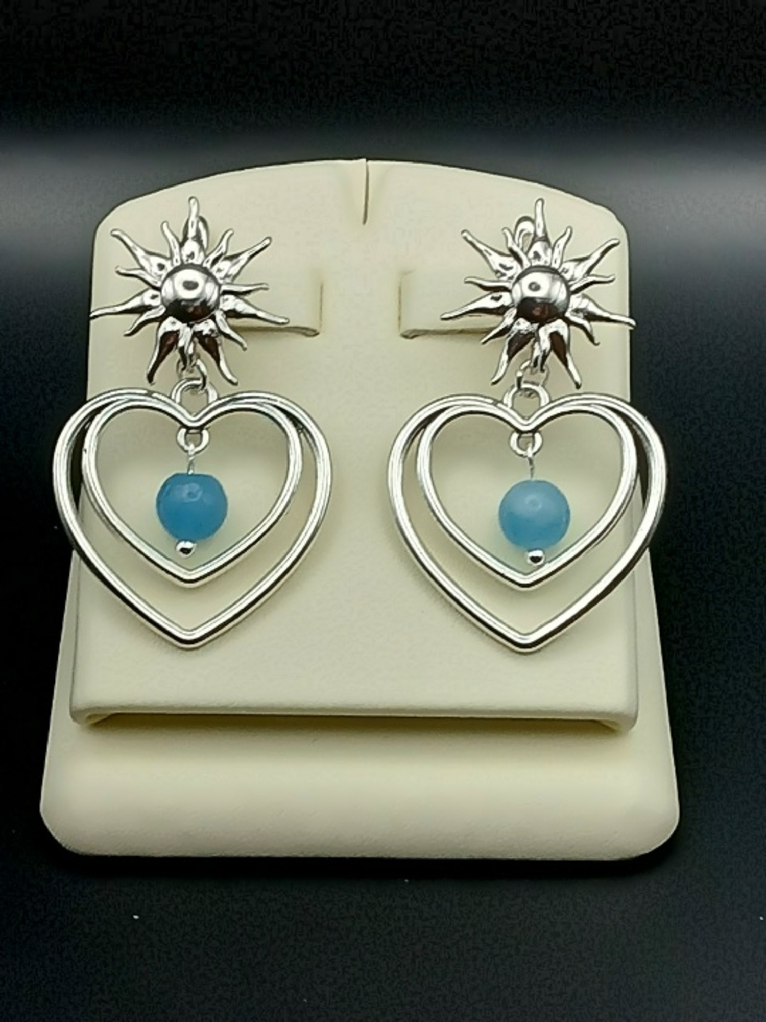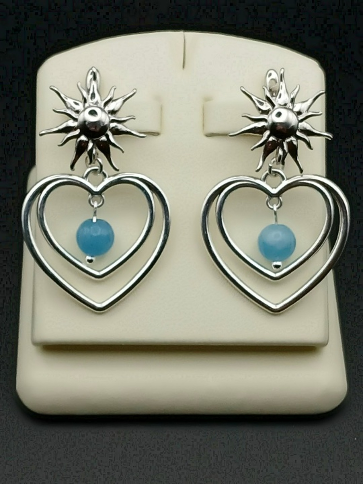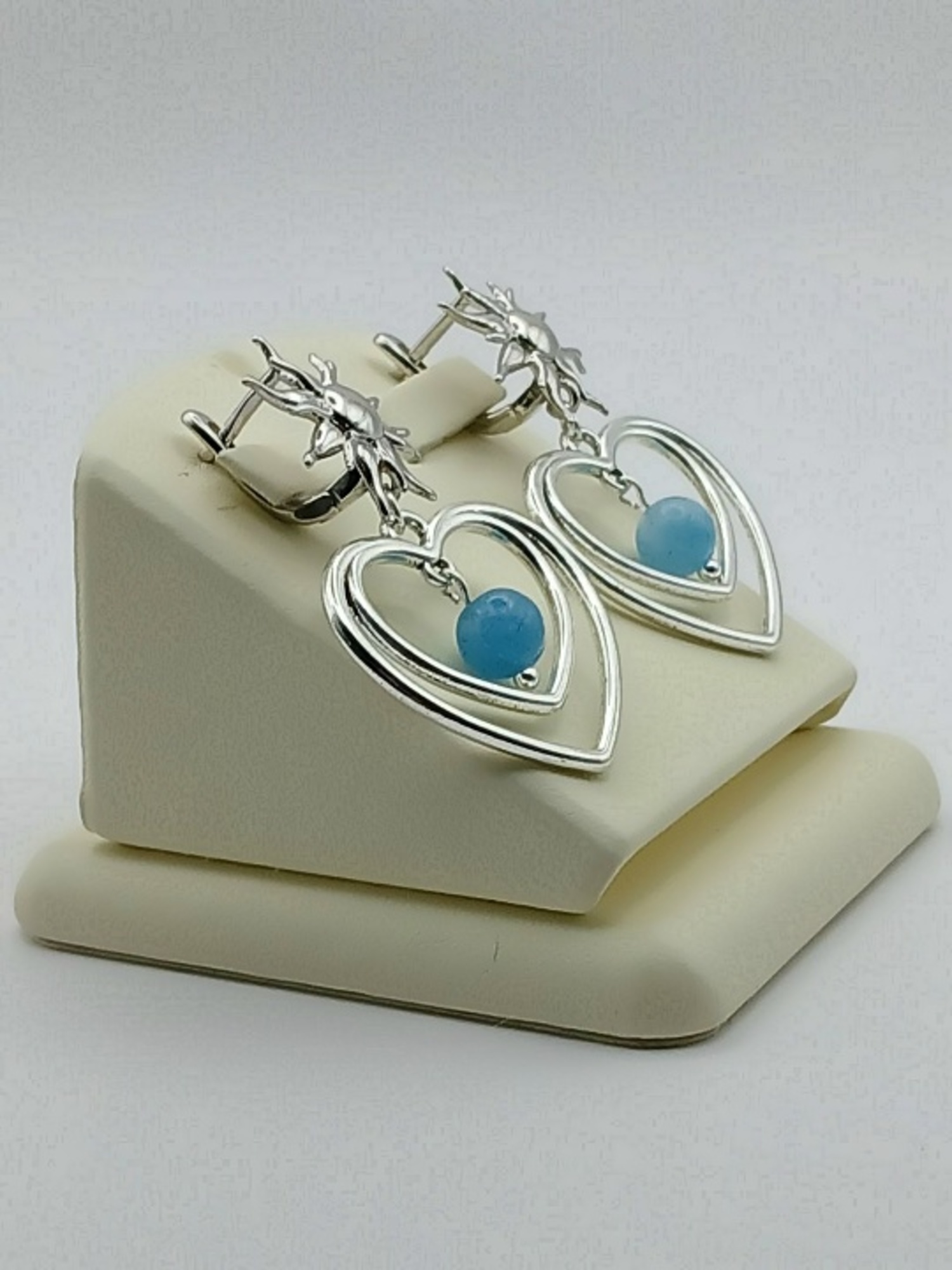 Круглые бусинки аквамарина, аккуратно заключённые в подвески в форме сердца, словно отражают свежесть морского бриза и чистоту прозрачной воды.