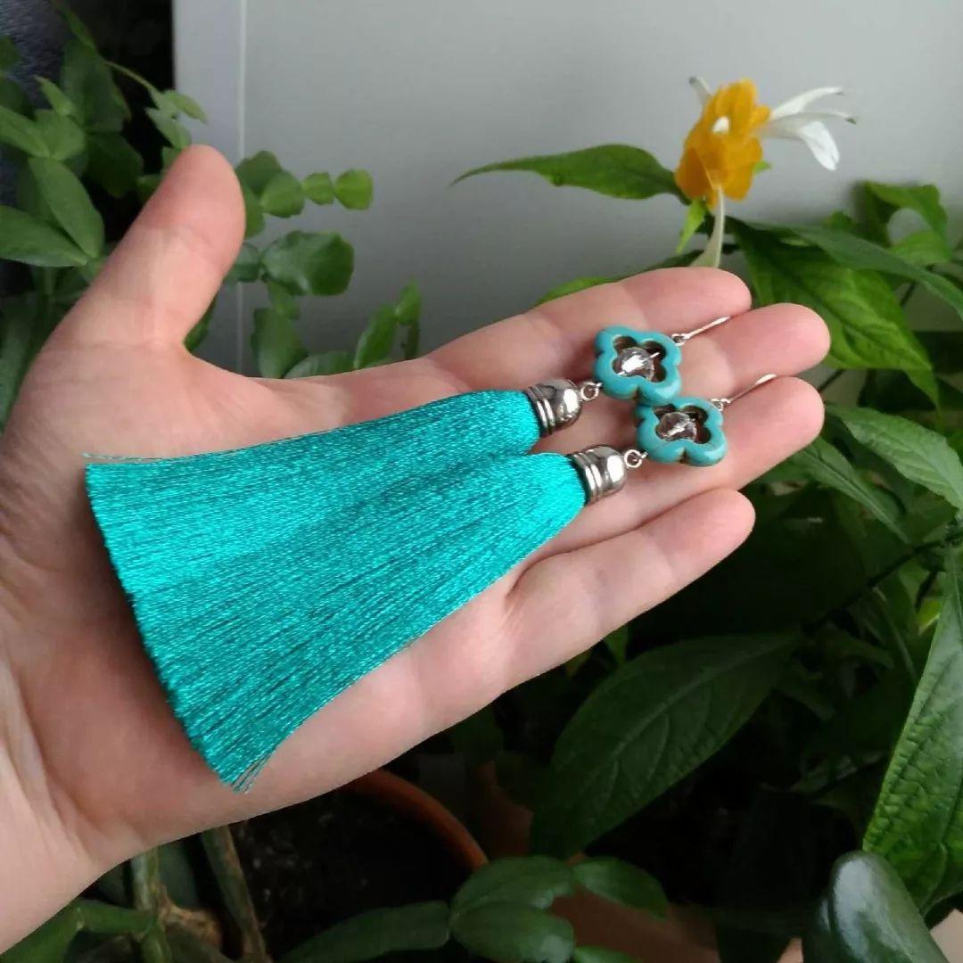 Кисти сделаны мной лично и поэтому они идеальны! Камень говлит (очень похож на бирюзу) в центре хрустальная бусина. Общая длина 13 см.