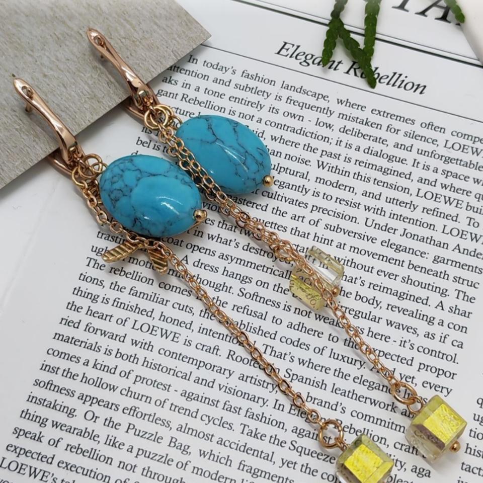 Погрузитесь в атмосферу морского бриза с этими уникальными серьгами ручной работы! Украшение сочетает в себе природную красоту бирюзы и утончённость золотых элементов, создавая гармоничный и запоминающийся образ.