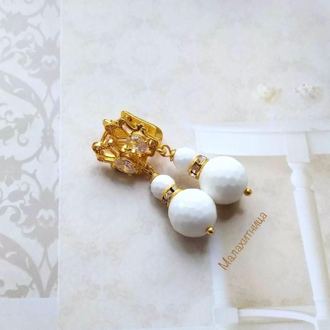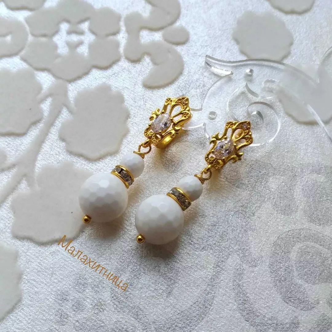 Серьги с белыми агатами "Прелесть"