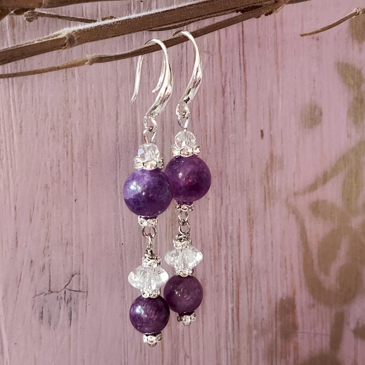 Серьги с чароитом и хрусталем