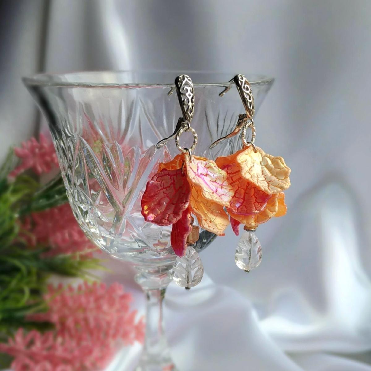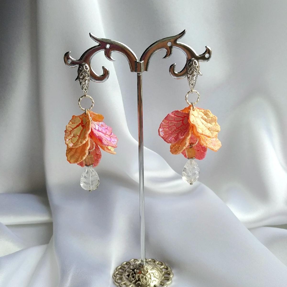 Материалы: лепестки из акрила, швензы с родиевым покрытием, фурнитура из хирургической стали.